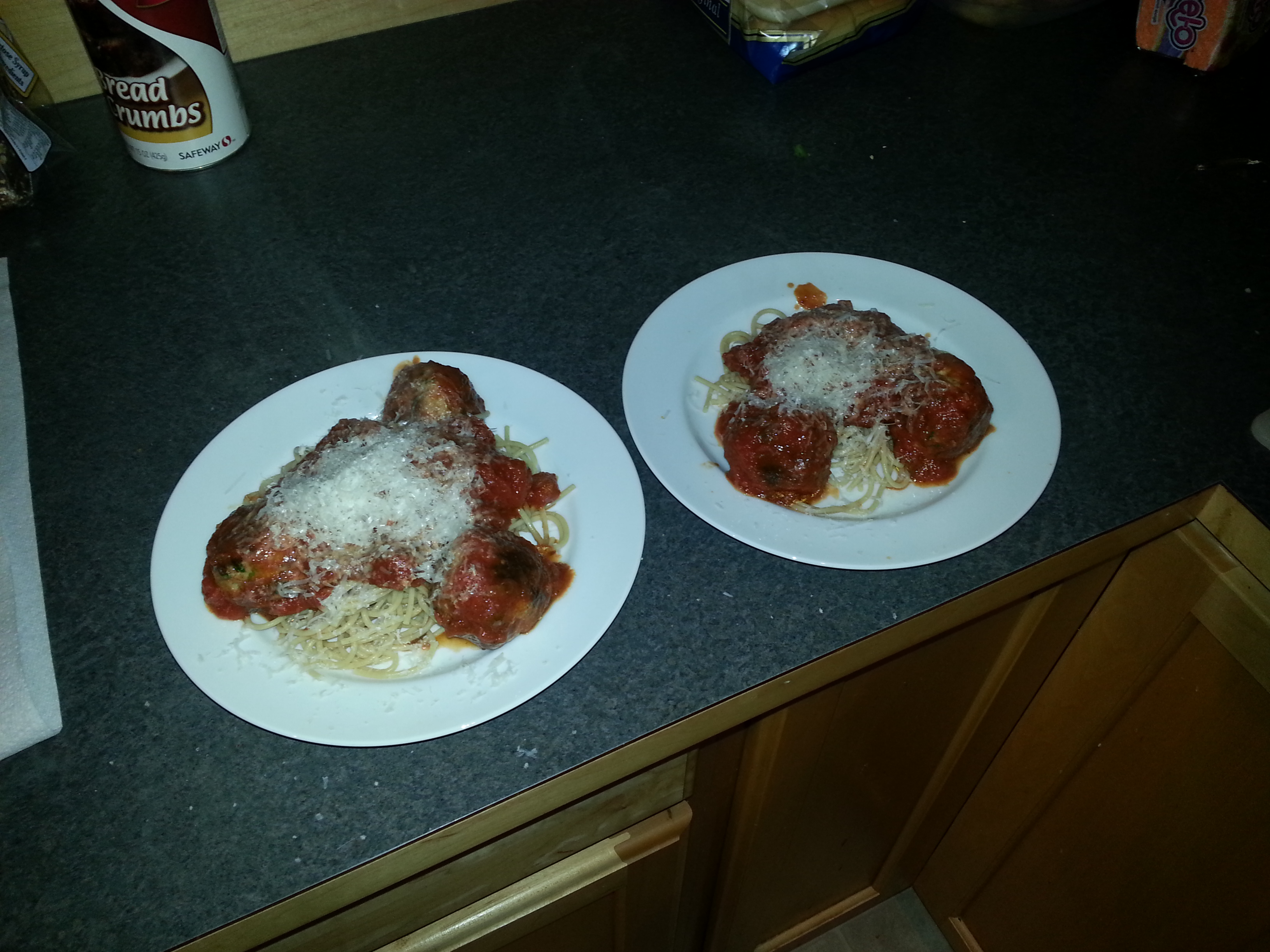 Which brings us to turkey meatballs. I’ve struggled to find a good recipe for turkey meatballs for a while now. Most recipes embrace the “instead” mentality in that they’re attempting to produce a substitute for “real” meatballs. Big mistake. A Rachel is not a Reuben, and turkey meatballs are not regular meatballs, it’s just not possible. So when making a turkey meatball, the first thing you need to do is throw that notion out the window, and accept that you’re working with a lean meat. Ground turkey is usually around 90% lean, which means that – in order to make a juicy, flavorful meatball – you’ll need to supplement the flavor and fat from other sources. When making meatballs, I also like to make a basic sauce, and serve them with spaghetti for a traditional, comforting meal. For the full dish, you will need the following ingredients: