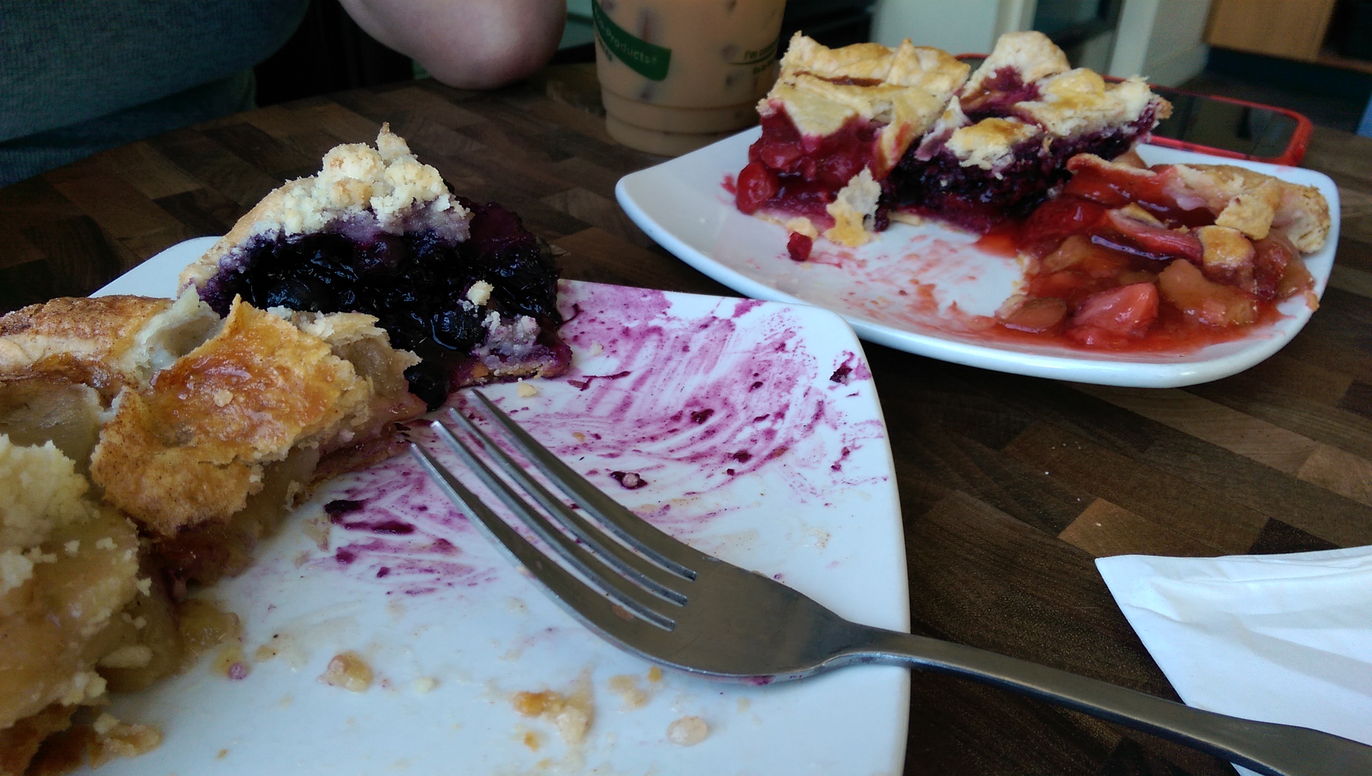 “I have to buy pies for some celebration for work. They don’t want crappy pies. We are going pie-tasting on Saturday.”