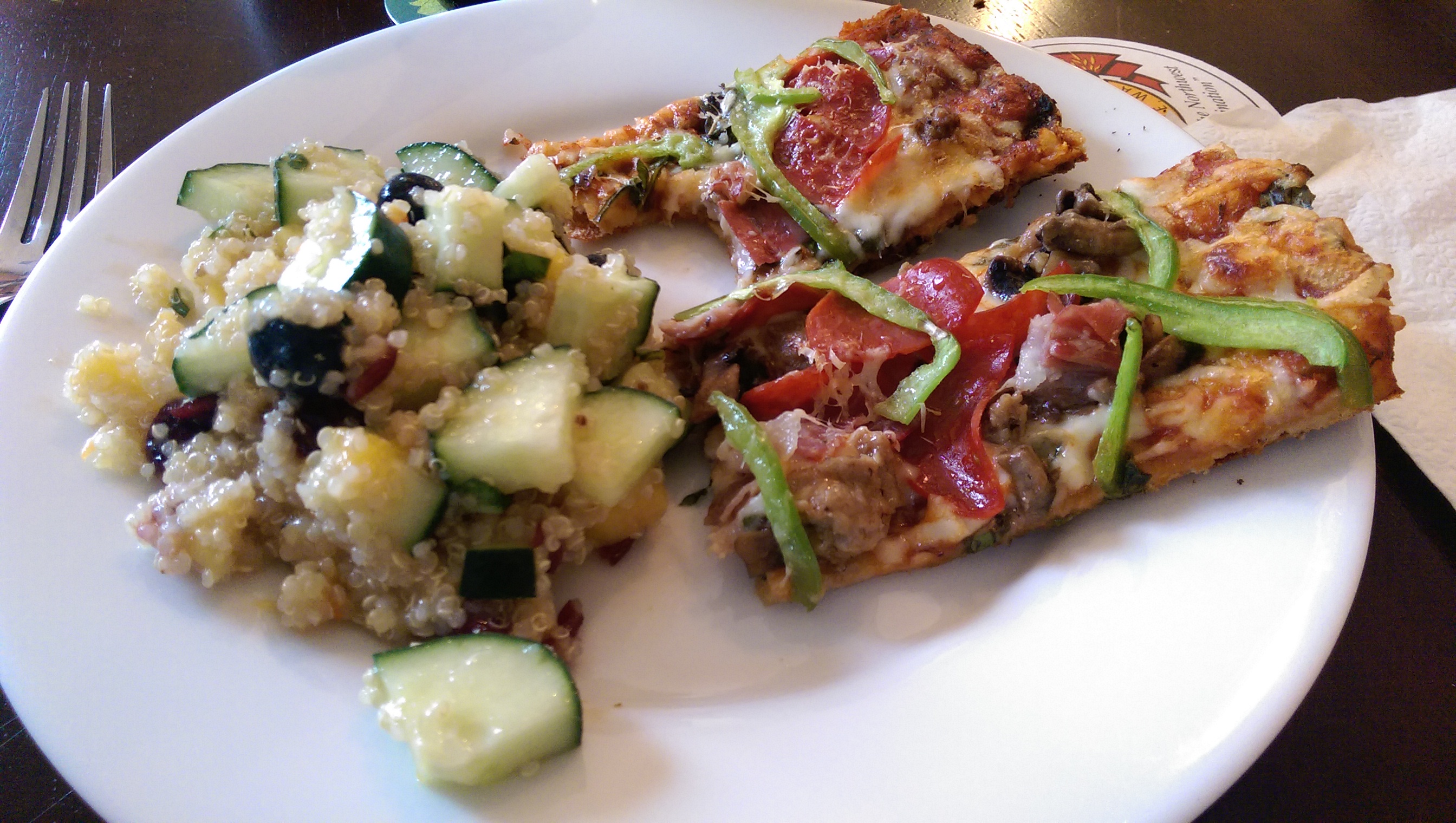 I’d sliced up peppers and onions, grated cheese, prepared sauce and cut up pepperoni and prosciutto. I was NOT going to forfeit my pizza-centric desires… but I was dough-less.
