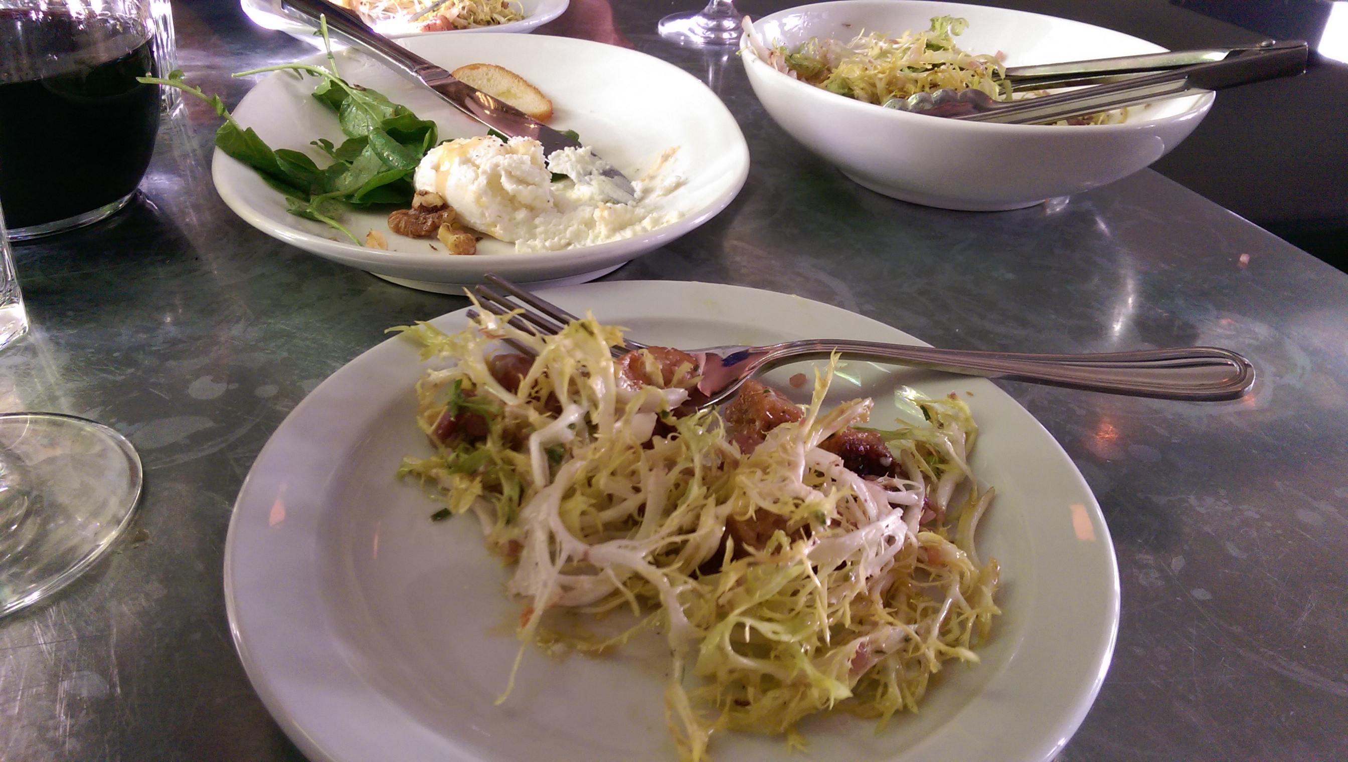 Our waiter was very friendly and helpful, and after helping us pick out a bottle of wine (a delicious, full-bodied 2009 Listrac-Medoc) he recommended that we split one order of the fries (it was a lot) and try a different side as well, and he ultimately expressed his condolences when we shared our further plans for the evening: it was an obligation… let’s leave it at that.