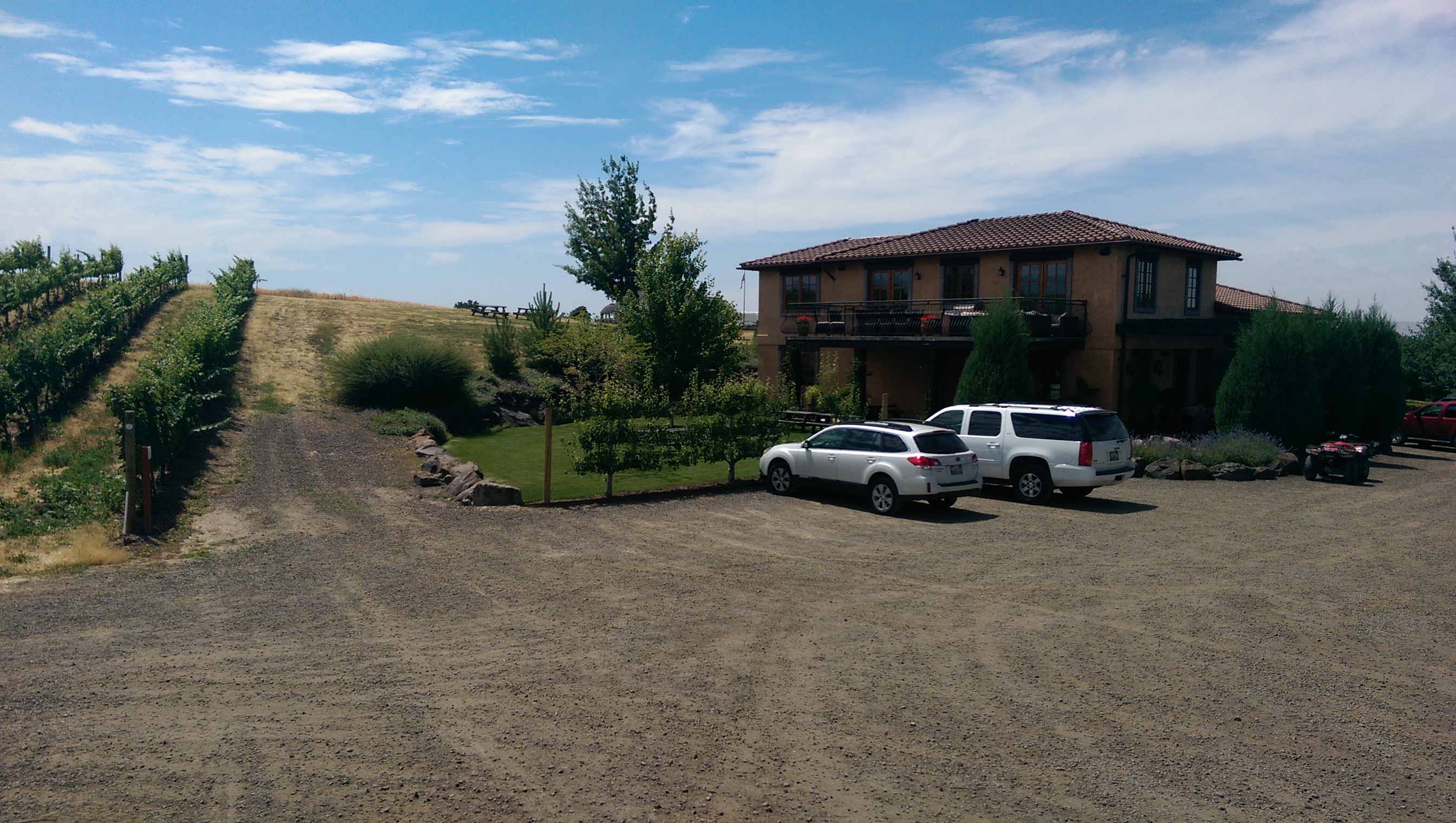 The drive took about four hours – including a pit stop for the pup – and saw us winding our way through the arid rolling hills of south-central Washington state. The terrain is a fascinating departure from the lush greenery of the Seattle area, with immense blue skies, picturesque hillocks and beautiful waves of amber grass and desert land, which is punctuated by acres of perfectly manicured fields and orchards.
