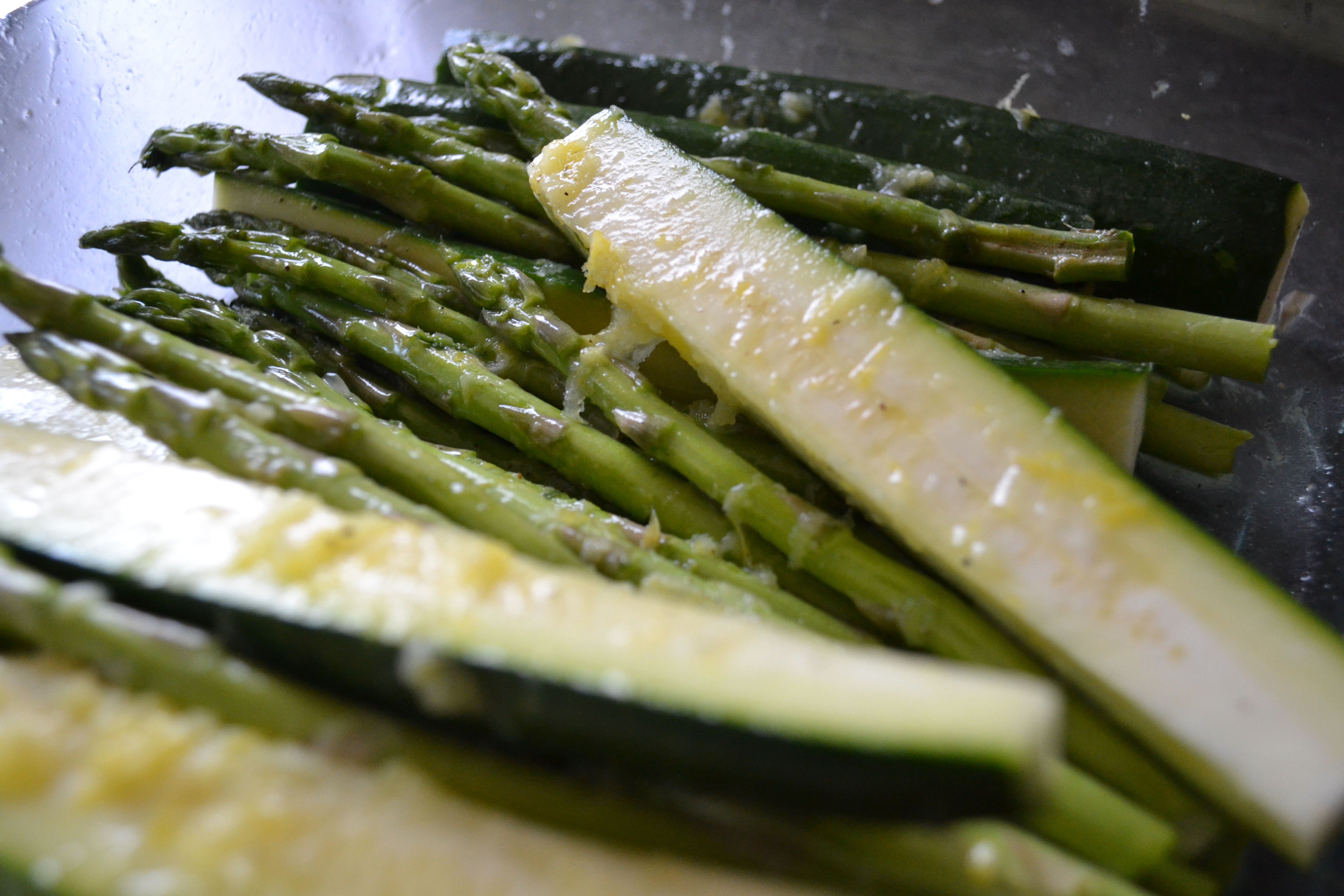 Simply zest and juice the lemon (that’s right, the zest and juice of the entire lemon) over the spears. This may seem like it will be lemon-overkill, but it won’t be, trust me.