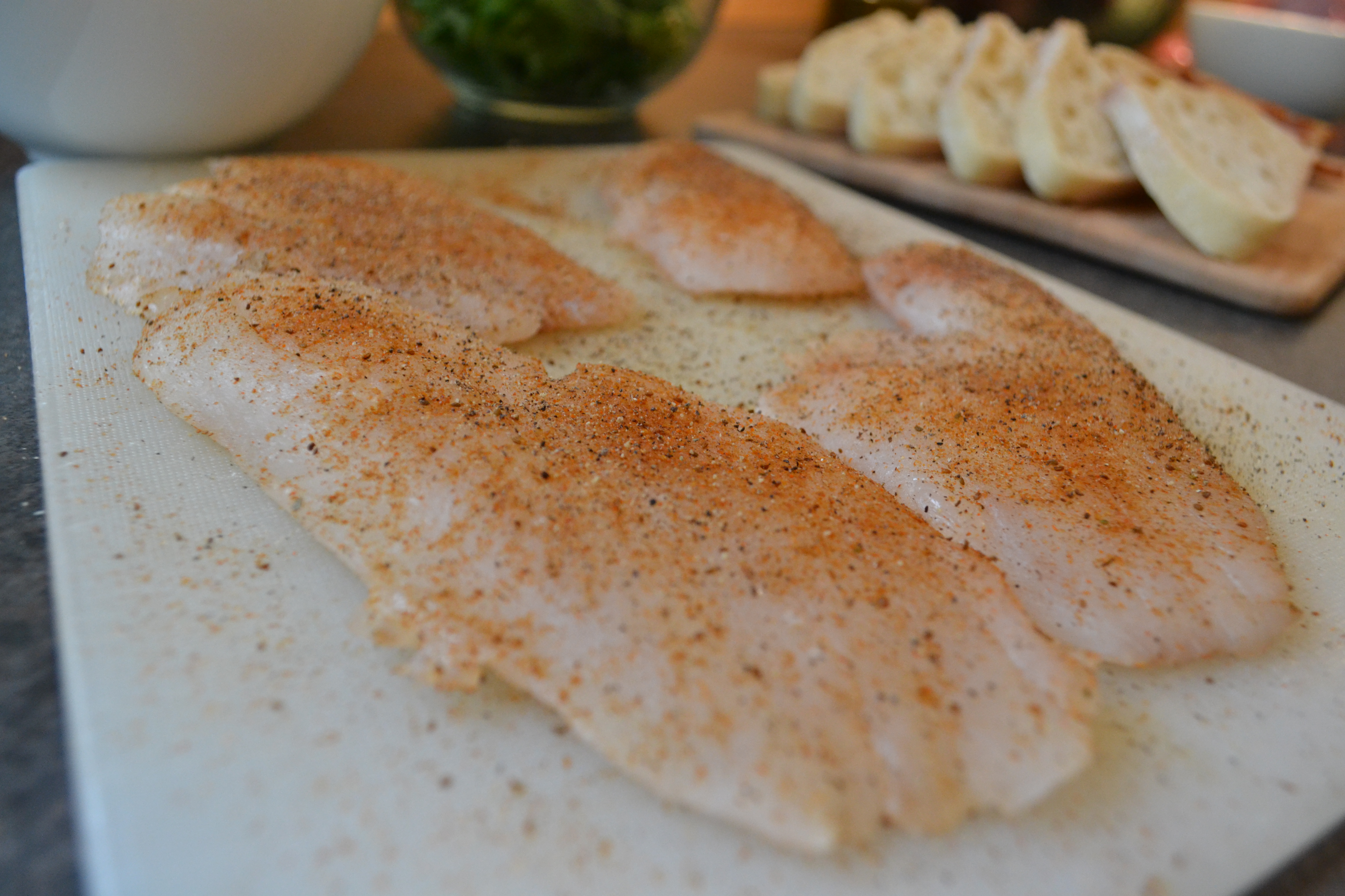Make sure all bones are removed from the fillets, and pat them dry with a paper towel.