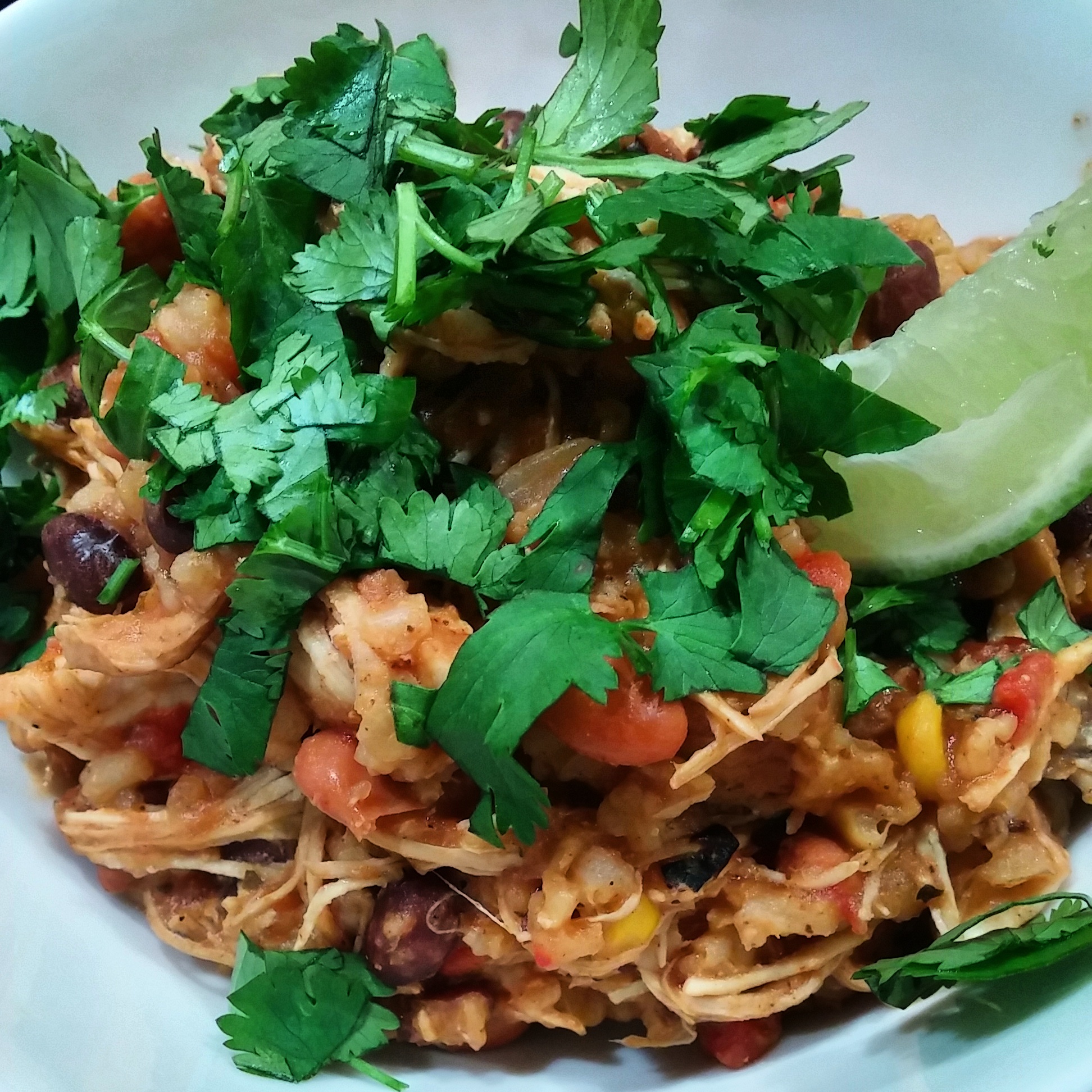 Stir the final product, and serve a few scoops with a squeeze of line and a pinch of fresh-chopped cilantro.