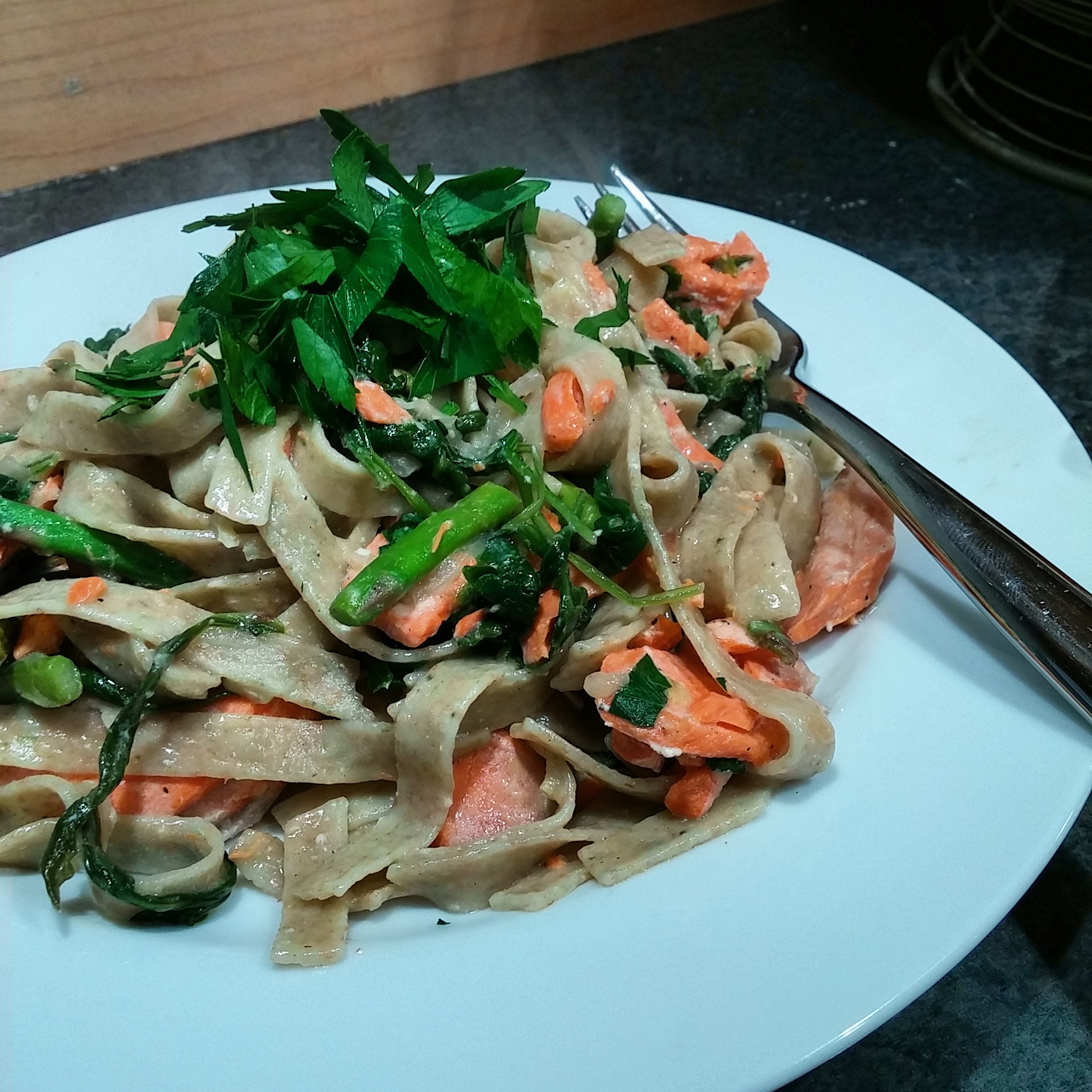 - 1/2 lb. pasta (I use my own whole wheat spinach linguine)
