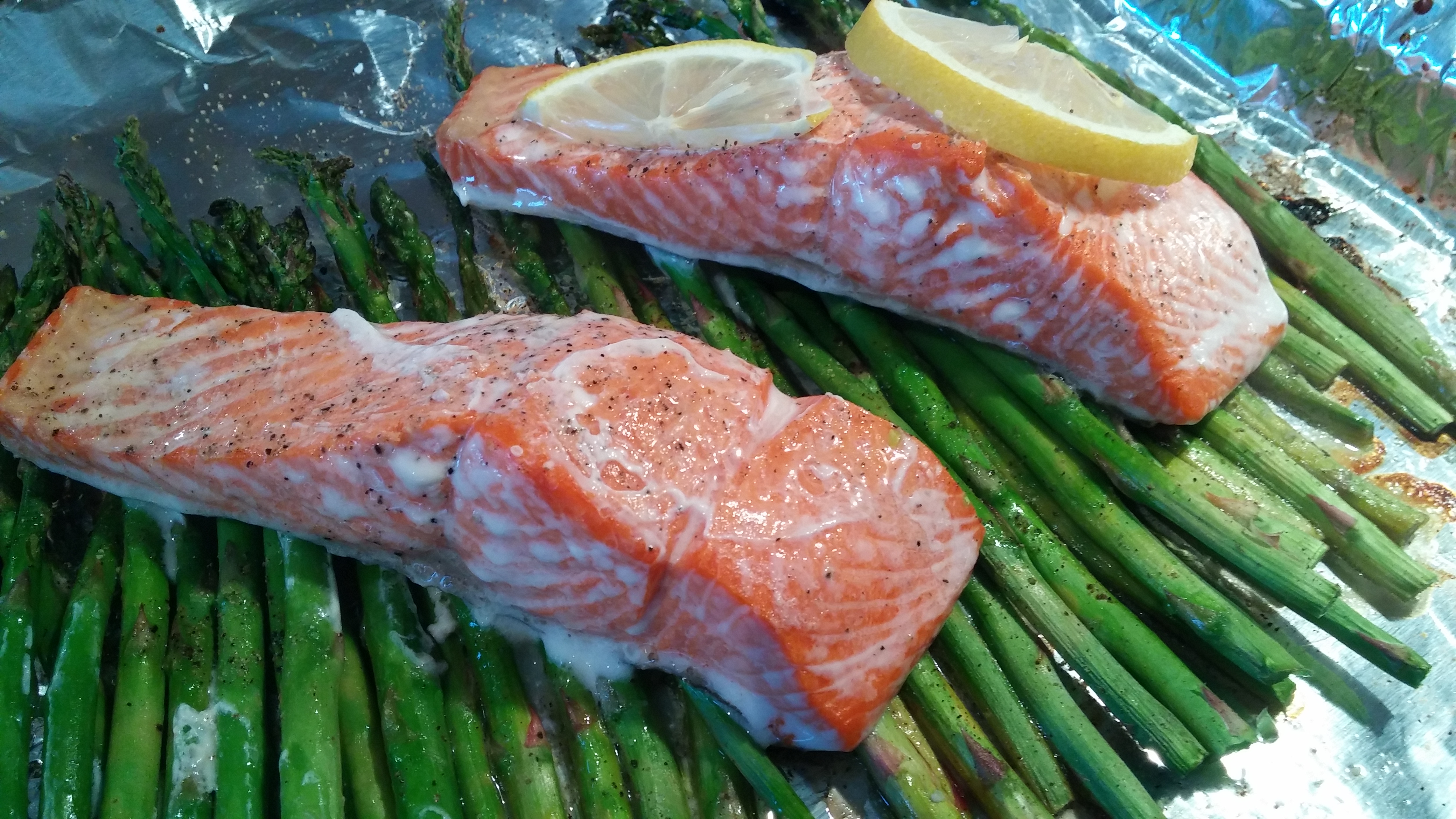 It’s pretty simple, the salmon is a rich, bold flavor, that’s enhanced by the lemon. The wilted arugula gives the whole dish the peppery notes that it needs to balance out the salty parmesan cheese, and the asparagus provides that rich, nutty flavor to round out the entire profile.