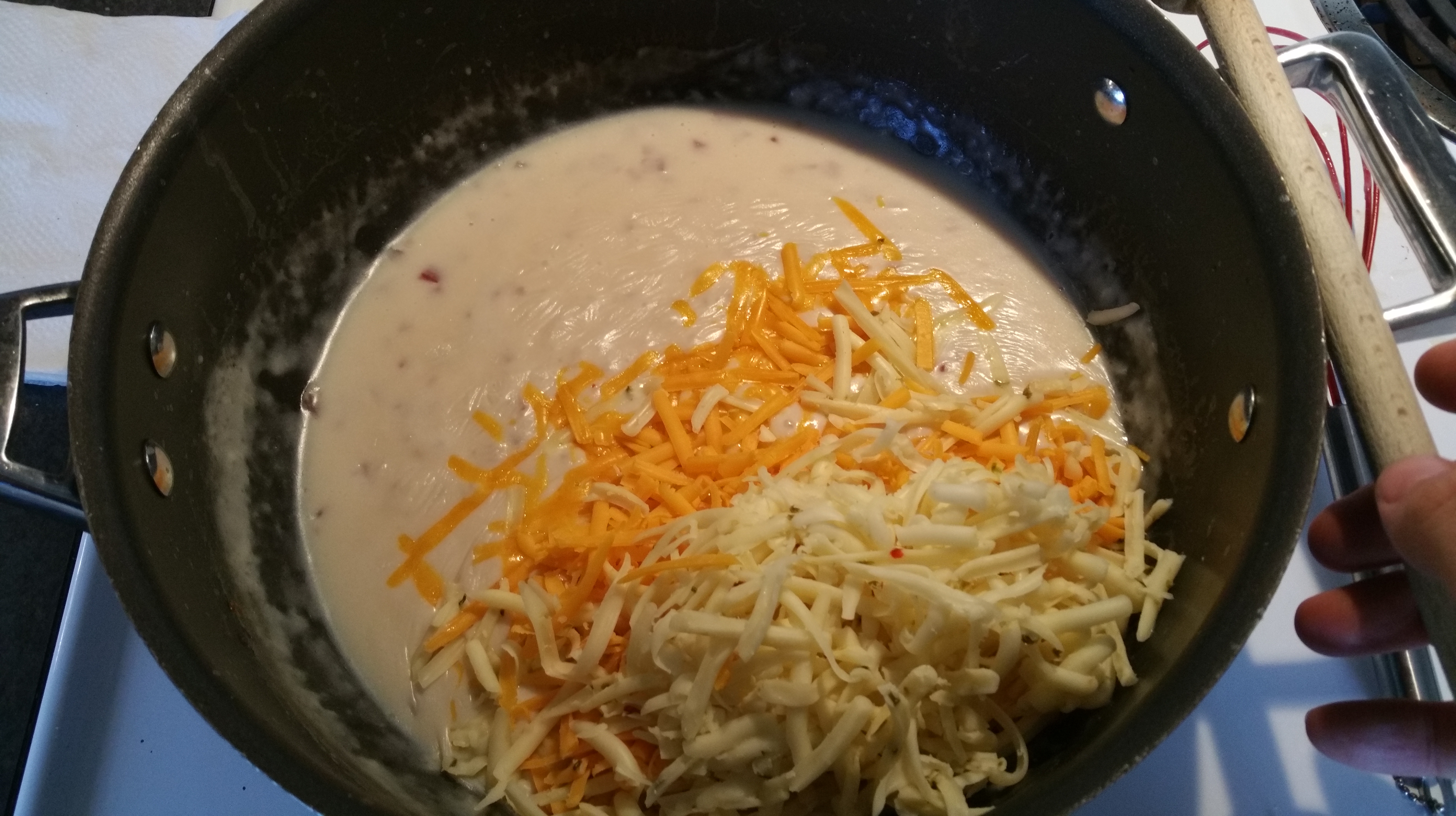 Fold in the cheese and chipotle, and remove the pan from the heat.