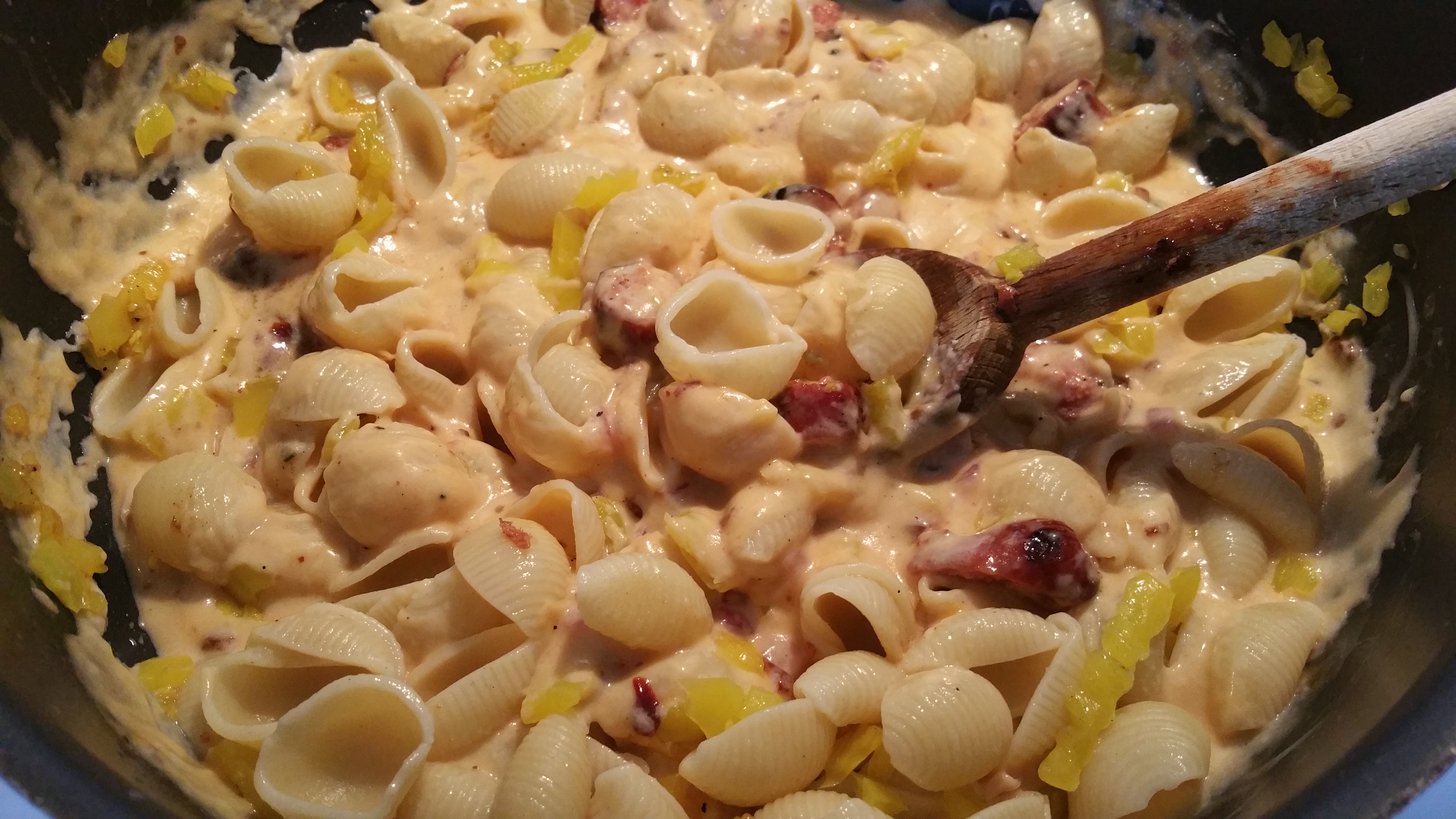 - 1/2 lb uncooked pasta (something good for mac and cheese, like shells)
