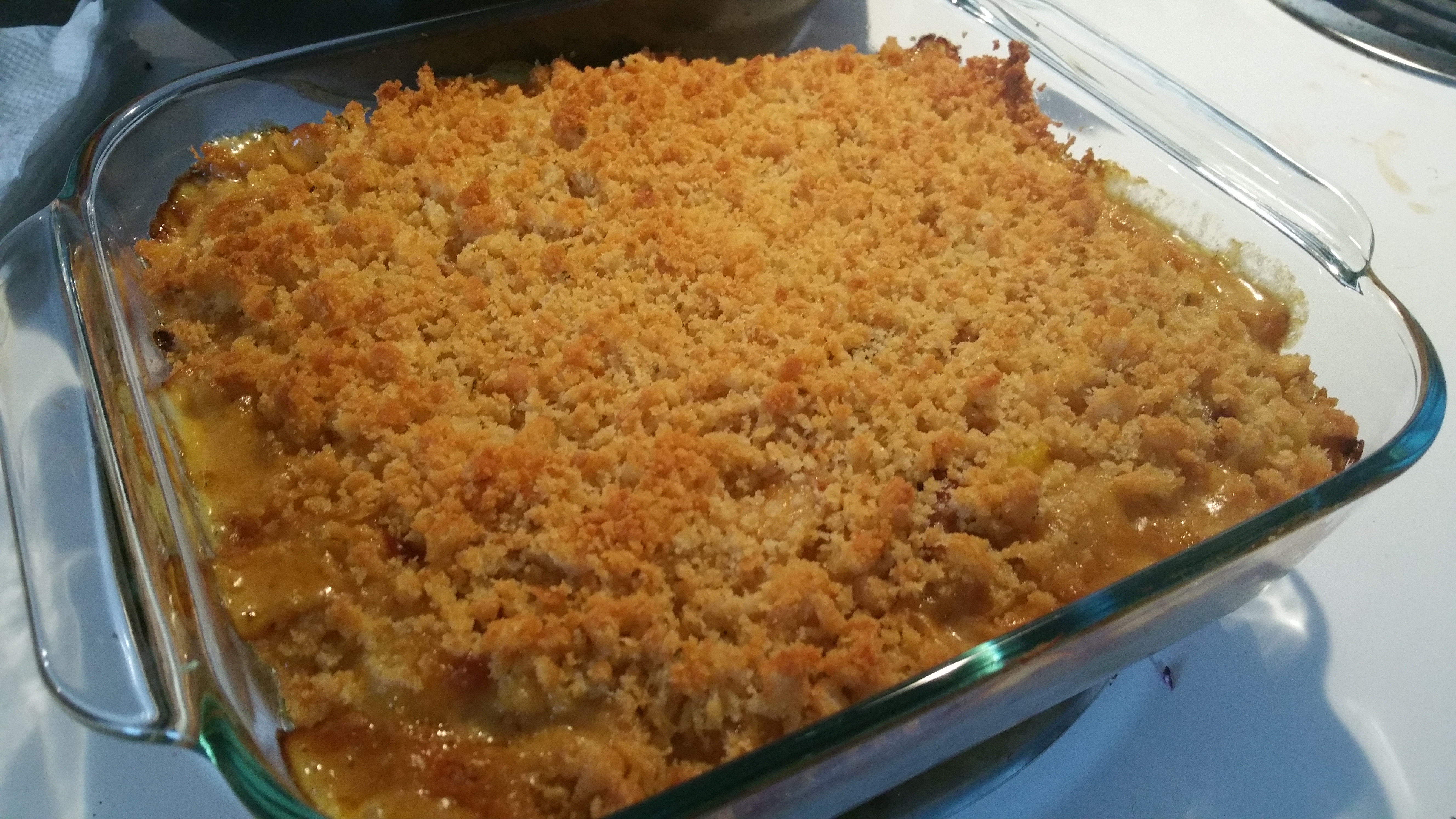 Spread the bread crumb mixture evenly across the top.