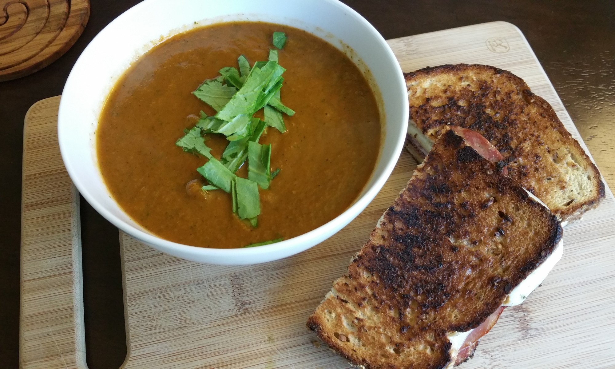 For the record, I definitely made a gooey grilled cheese to go with this soup. Granted, this totally negates the vegan-ness of the meal… but that’s definitely the point of the grilled cheese. Cheese is delicious.