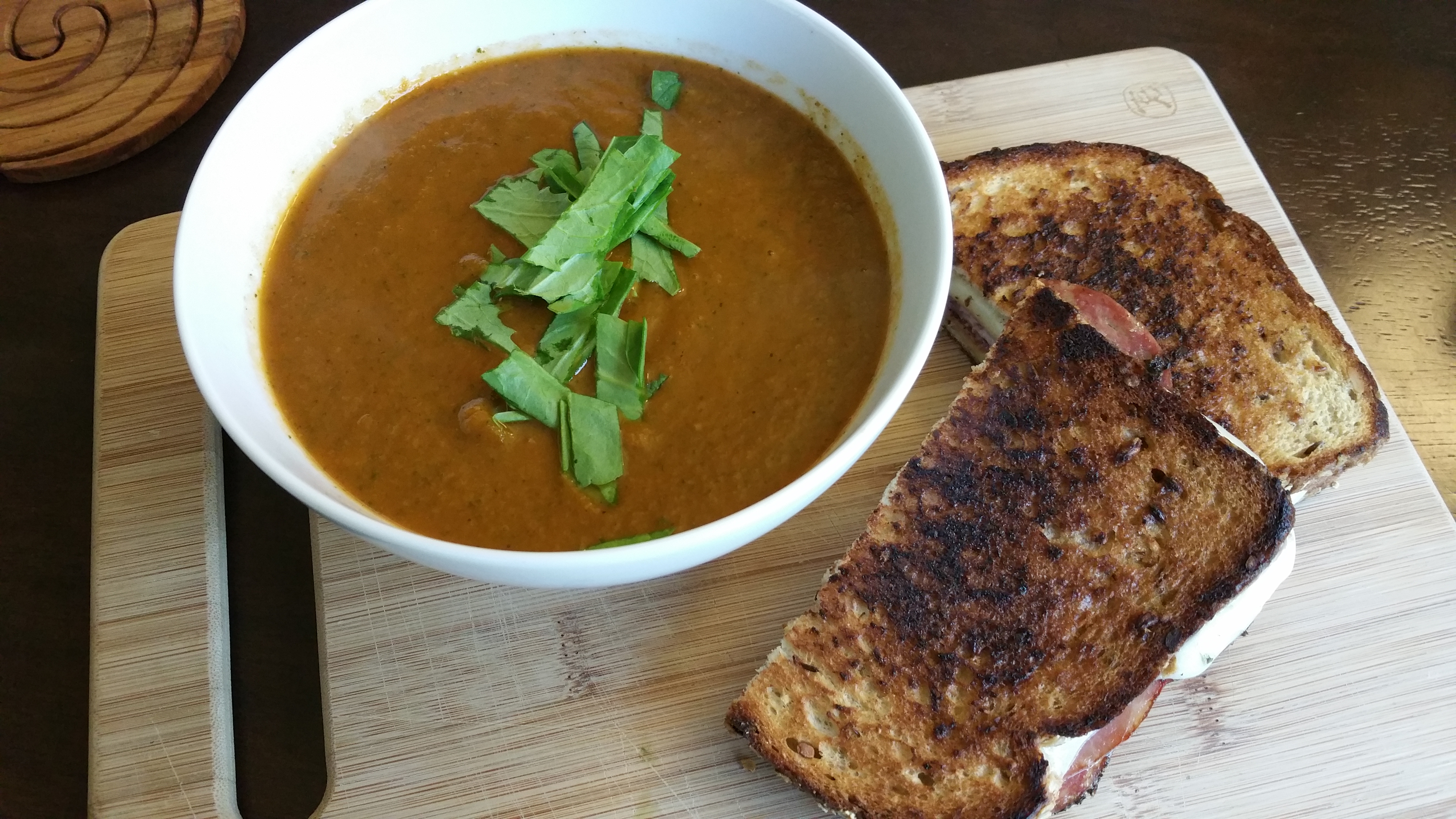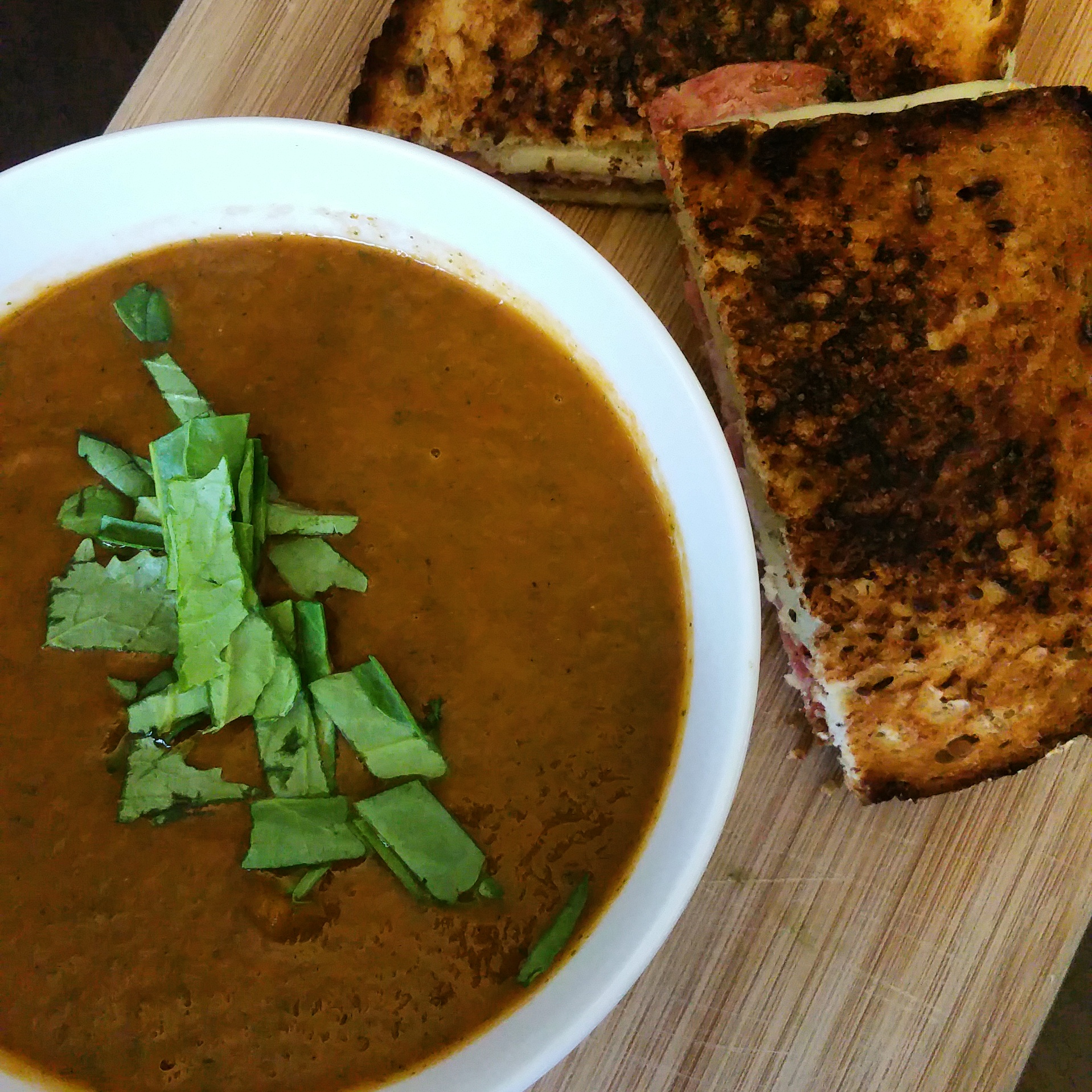 For the record, I definitely made a gooey grilled cheese to go with this soup. Granted, this totally negates the vegan-ness of the meal… but that’s definitely the point of the grilled cheese. Cheese is delicious.