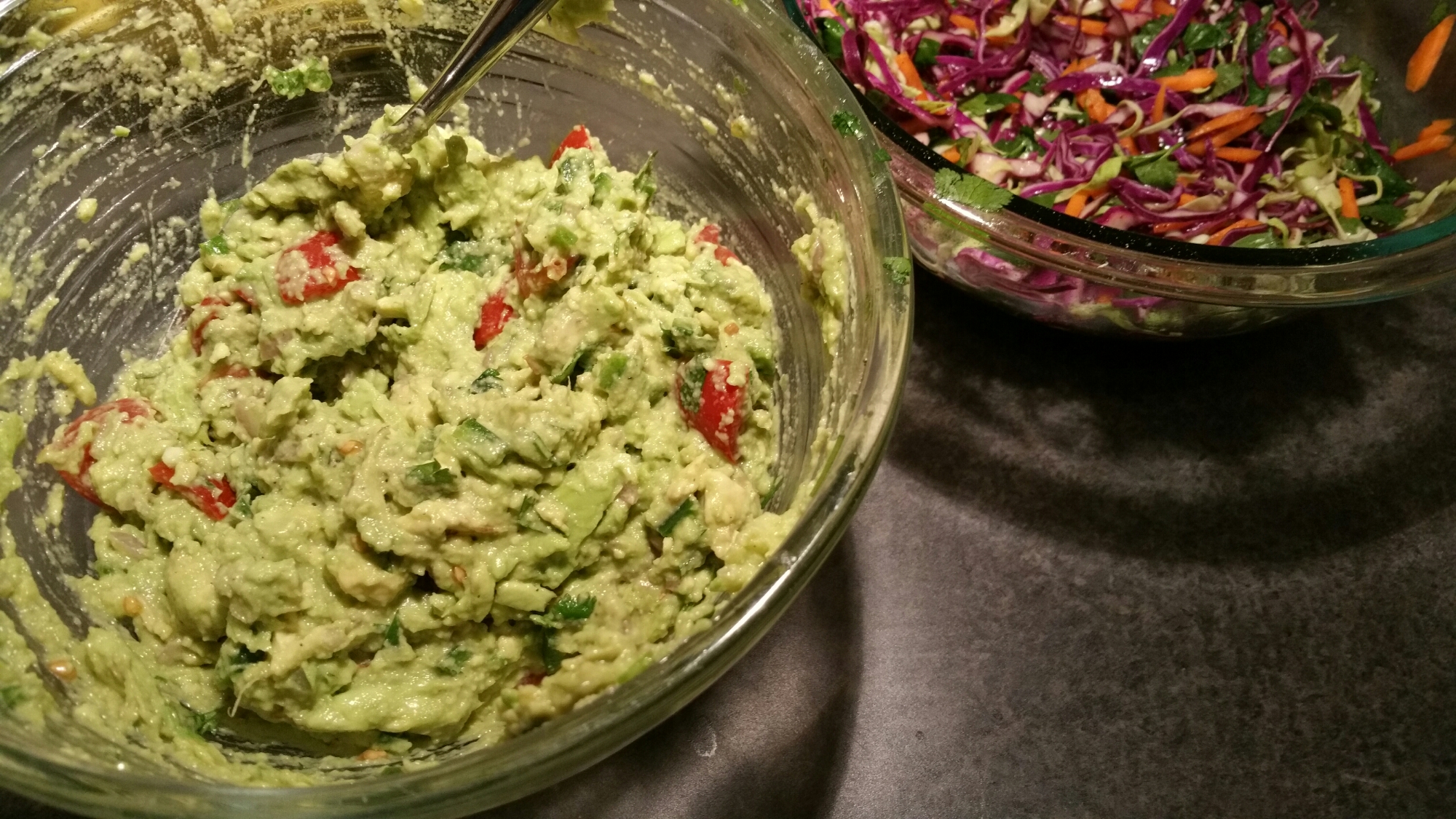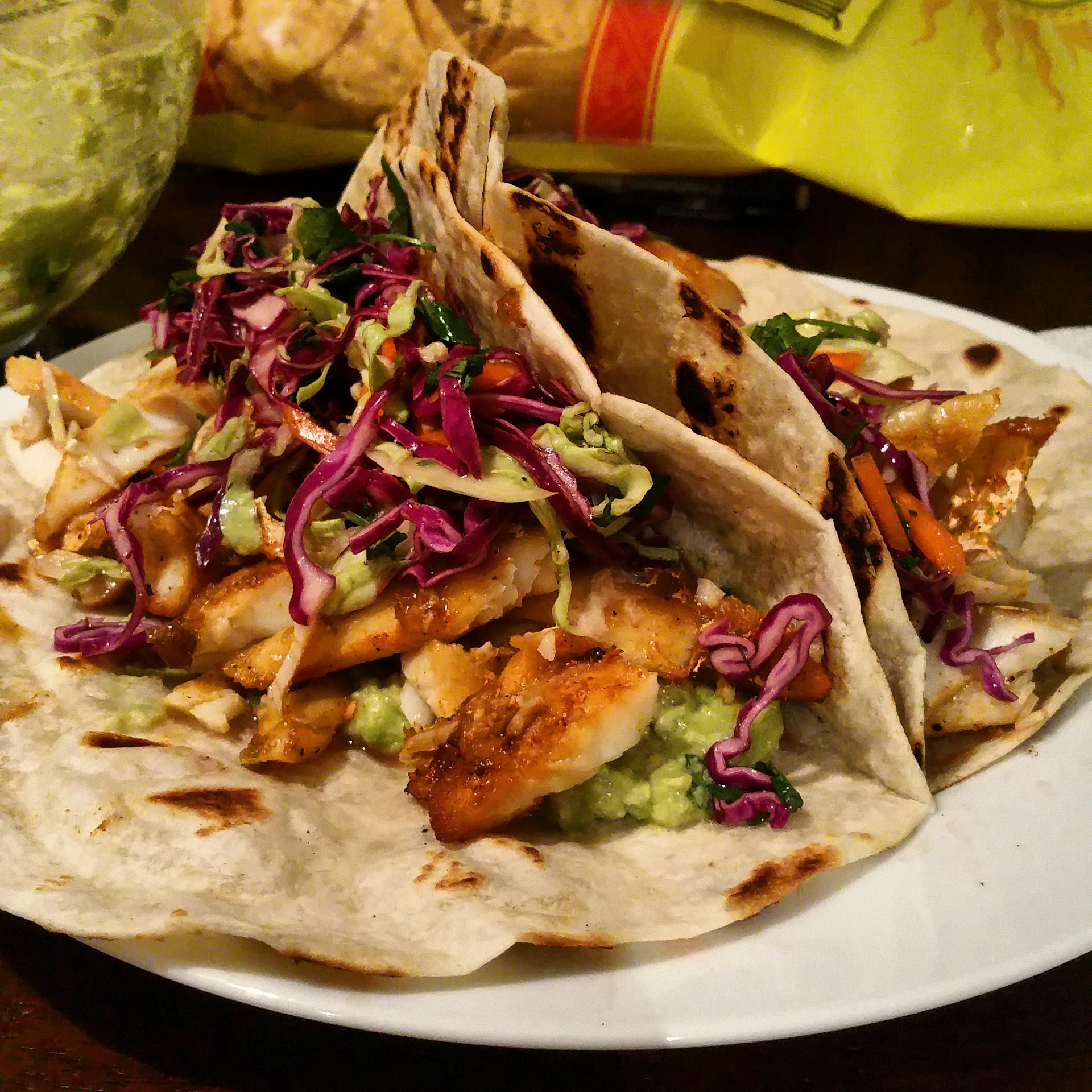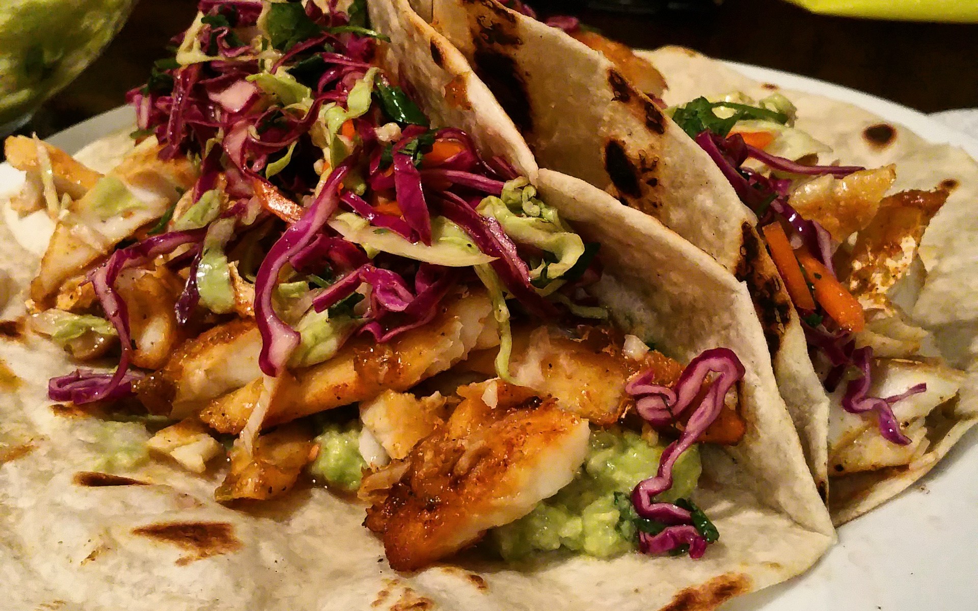 Assemble your tacos on tortillas with a generous serving of fish, a good dollop of slaw, and maybe a little homemade guacamole to top it off!