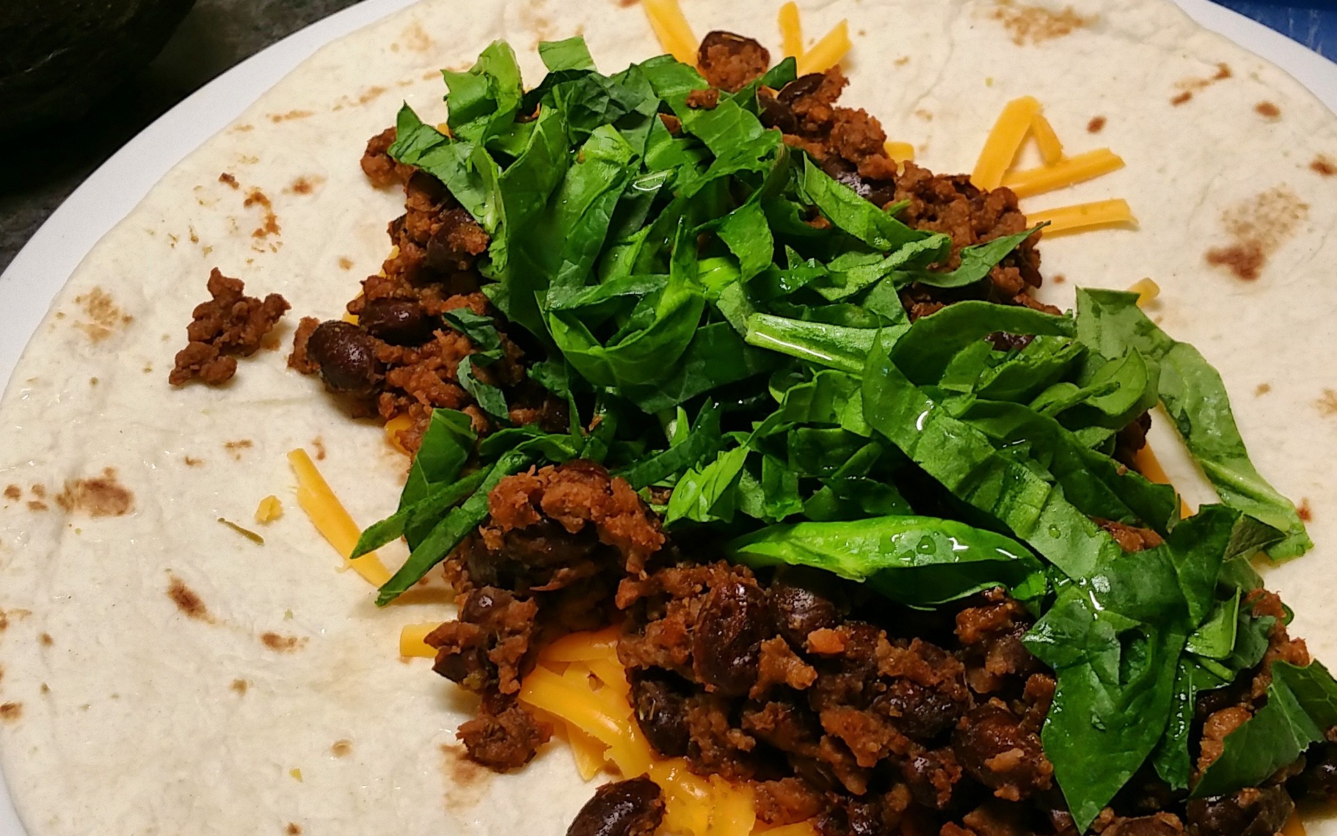I grew up on those bad boys: giant flour tortillas stuffed with grated cheese, chopped tomatoes, shredded iceberg lettuce, and of course, a heaping mound of ground beef, seasons with a palm-sized packet full of salty spices. Yum. I’d slather that sloppy mess with a squirt of ketchup – a childhood obsession – and dig in.