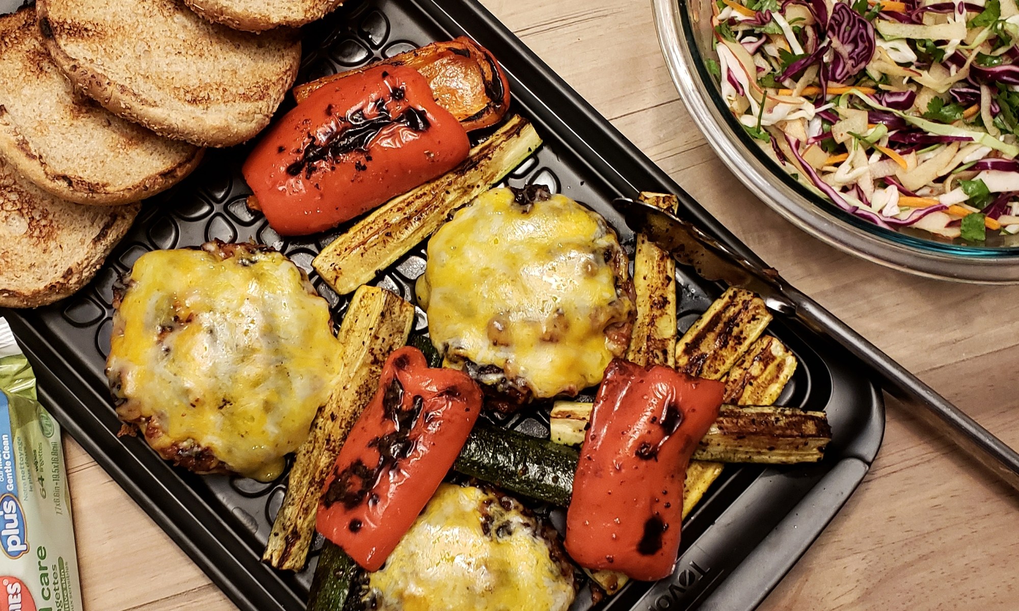 Step 8: Seriously cheesy. Also, some grilled veg in the background to go with the meal. Grilled veg is easy: slice it, toss it in olive oil, salt and pepper, and grill it until it’s pretty.
