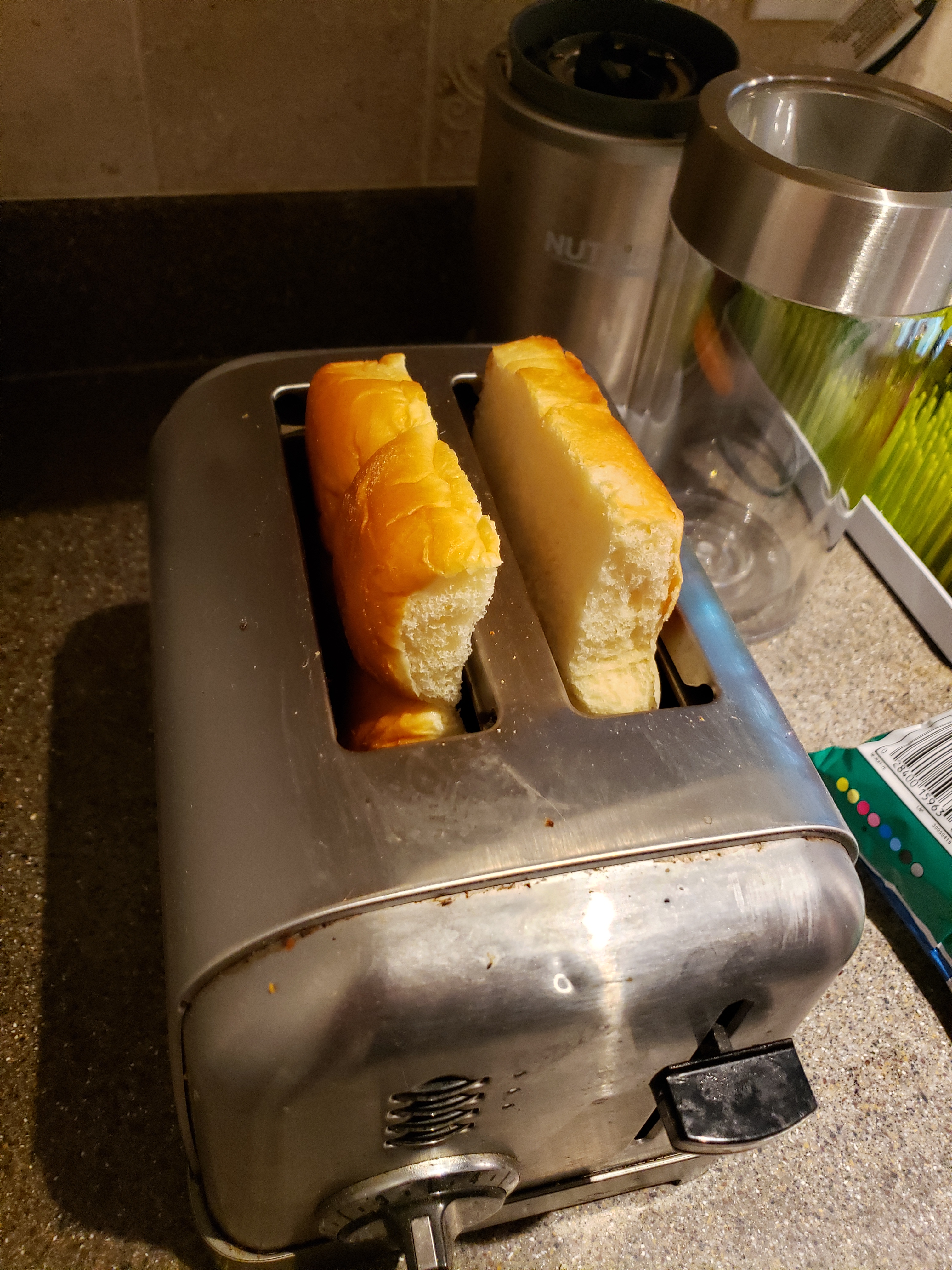 5. If you like toasted rolls, take out the Hawaiian rolls in groups of four (because they stick together) and slice them like a bagel. Place the slices in your toaster, and toast to your desired doneness.