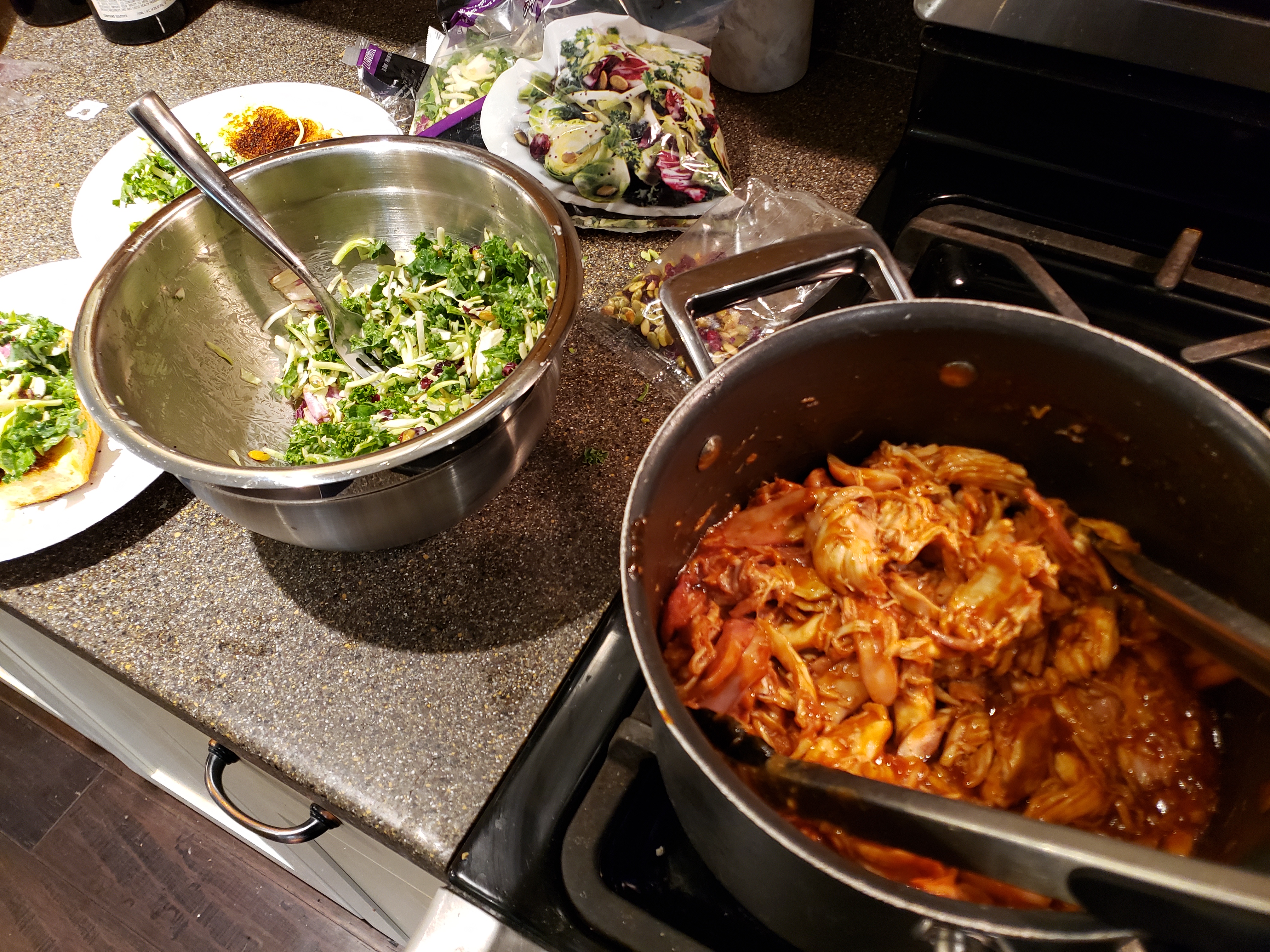 Pull the chicken and give it some sauce.