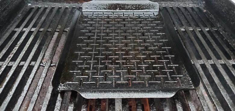 - Let the grill get hot, and when you’re ready to cook, give the surface (the tray, the sheet of foil, or the grates themselves) a generous blast with the nonstick cooking spray.