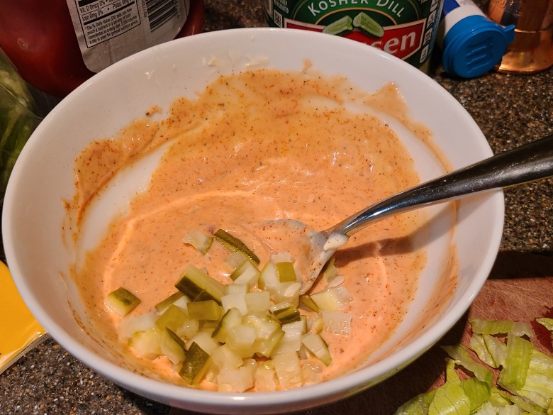The fancy sauce recipe I’ve been playing around with uses the basic elements as a foundation, and adds some new, complimentary flavors and textures that should give your burger and fry experience a tasty boost.