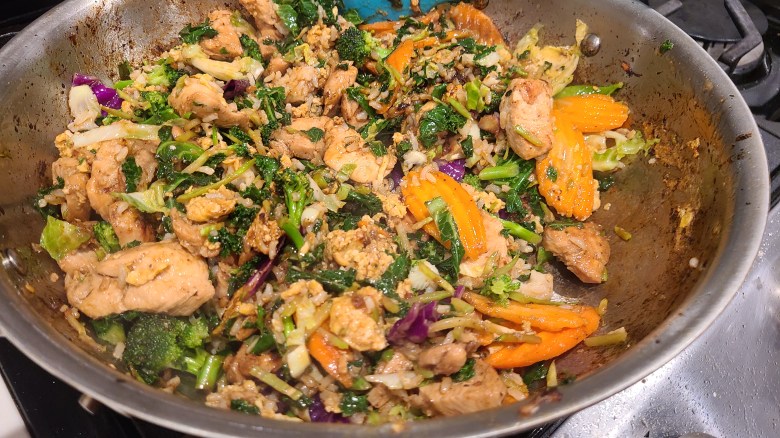 We’ve tried a few of the premixed bags of veggies (slaws, salads and such), and rely on the premade salads and wraps as a healthier option for quarantine work day lunches. During the last shopping trip, in addition to our normal haul of yogurt, salads, and a hunk of their delicious Pugliese, my wife also grabbed a bag labeled “Miso Vegetable Brown Rice Saute Kit” and a small package of chicken, thinking it would be an easy meal that I could hack together.