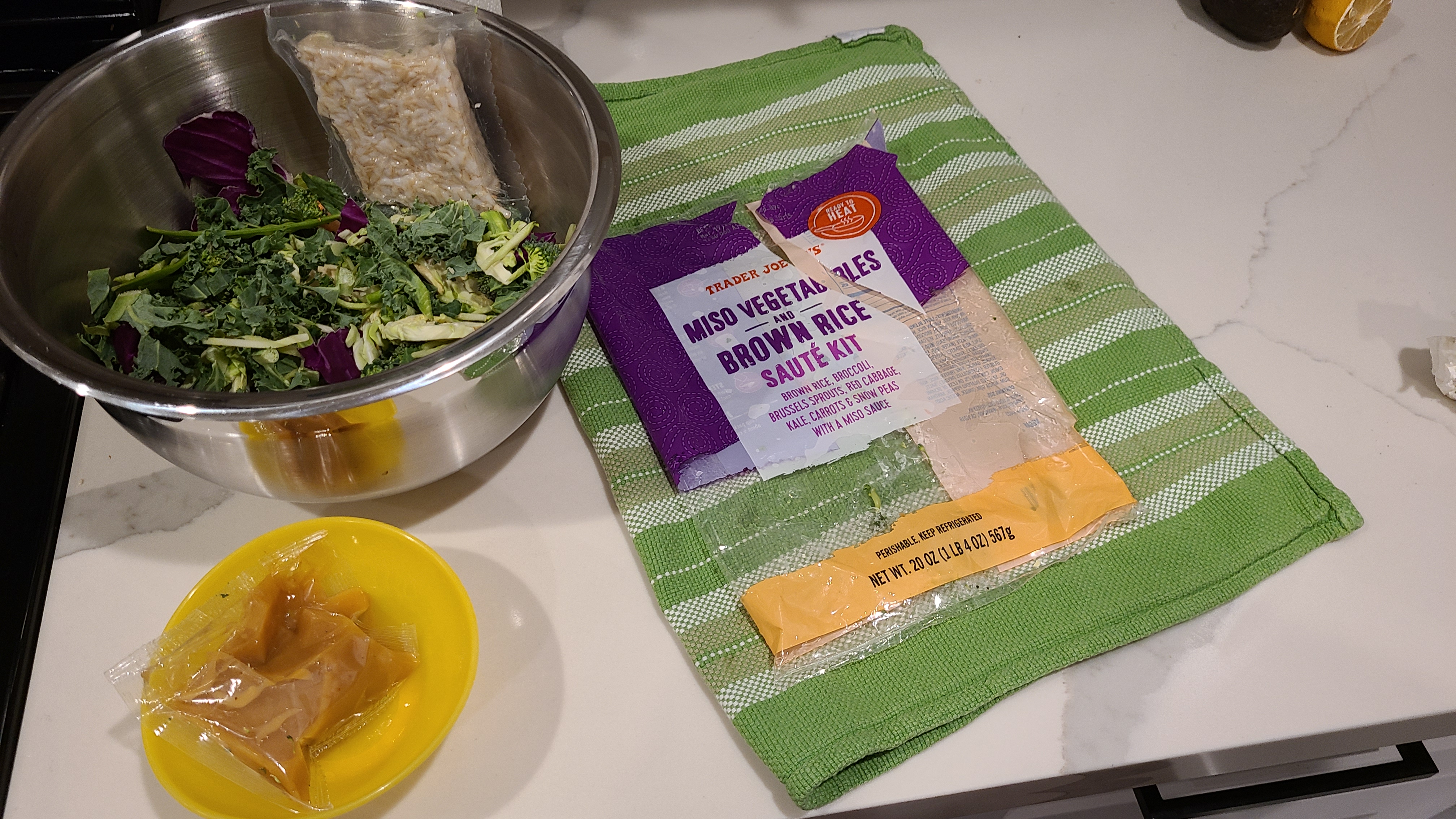 - Trader Joe’s Miso Vegetable and Brown Rice Sauté Kit