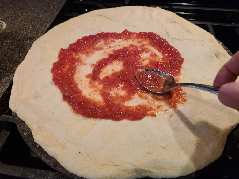 I never really had an opinion about pizza sauce until I started making a lot of my own pizzas at home. Sure, it’s a necessary ingredient, but it had never really been the focus of my attention. What can I say? I’m a toppings guy. So when I started cooking my own, I began by buying pizza sauce in jars from the grocery store. That’s not necessarily a bad thing, as there are plenty of tasty sauces out there, and most grocery stores sell a “fresh” version of sauce in the refrigerated section. The Trader Joe’s version – in the little clear tub – is still a reliable favorite.