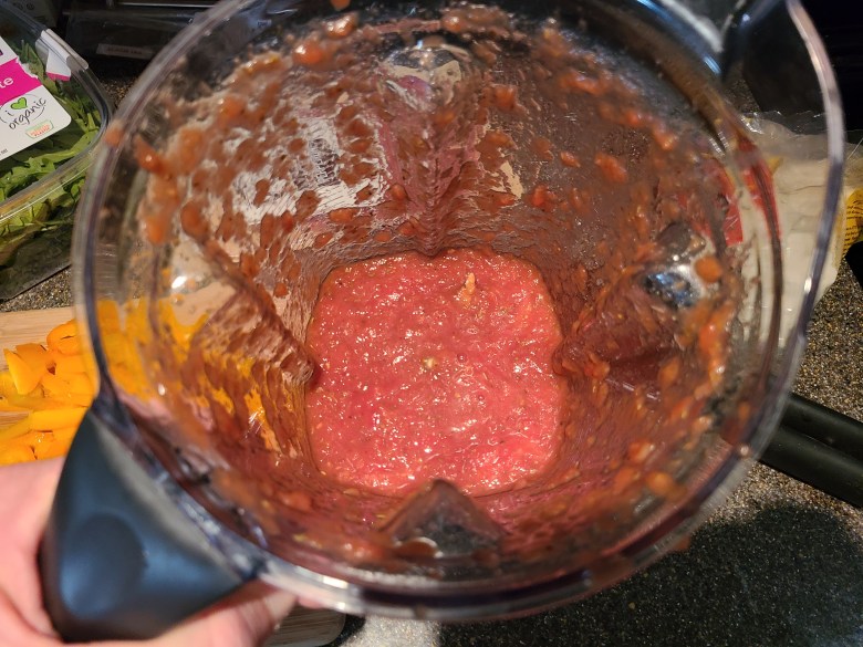 - Blend it down to your preferred consistency. I personally like a relatively smooth sauce, though I don’t mind a few smaller chunks.