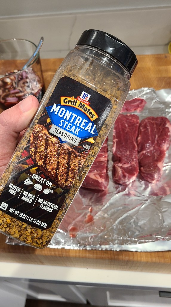 - If you don’t know where to start, I recommend McCormick Grill Mates Montreal Steak Seasoning, which is a simple combination of salt, black and red pepper, garlic, onion and a touch of paprika. plus you can find it just about anywhere.