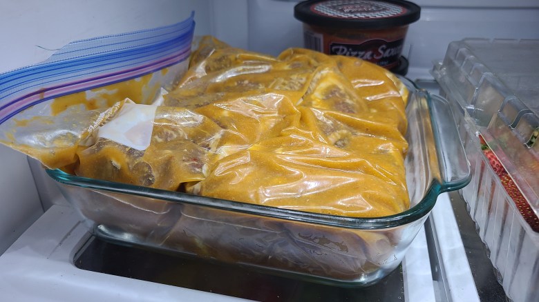 - Place the ribs into a gallon ziploc bag, or a big bowl, and pour the marinade over it, making sure that everything gets coated evenly.
