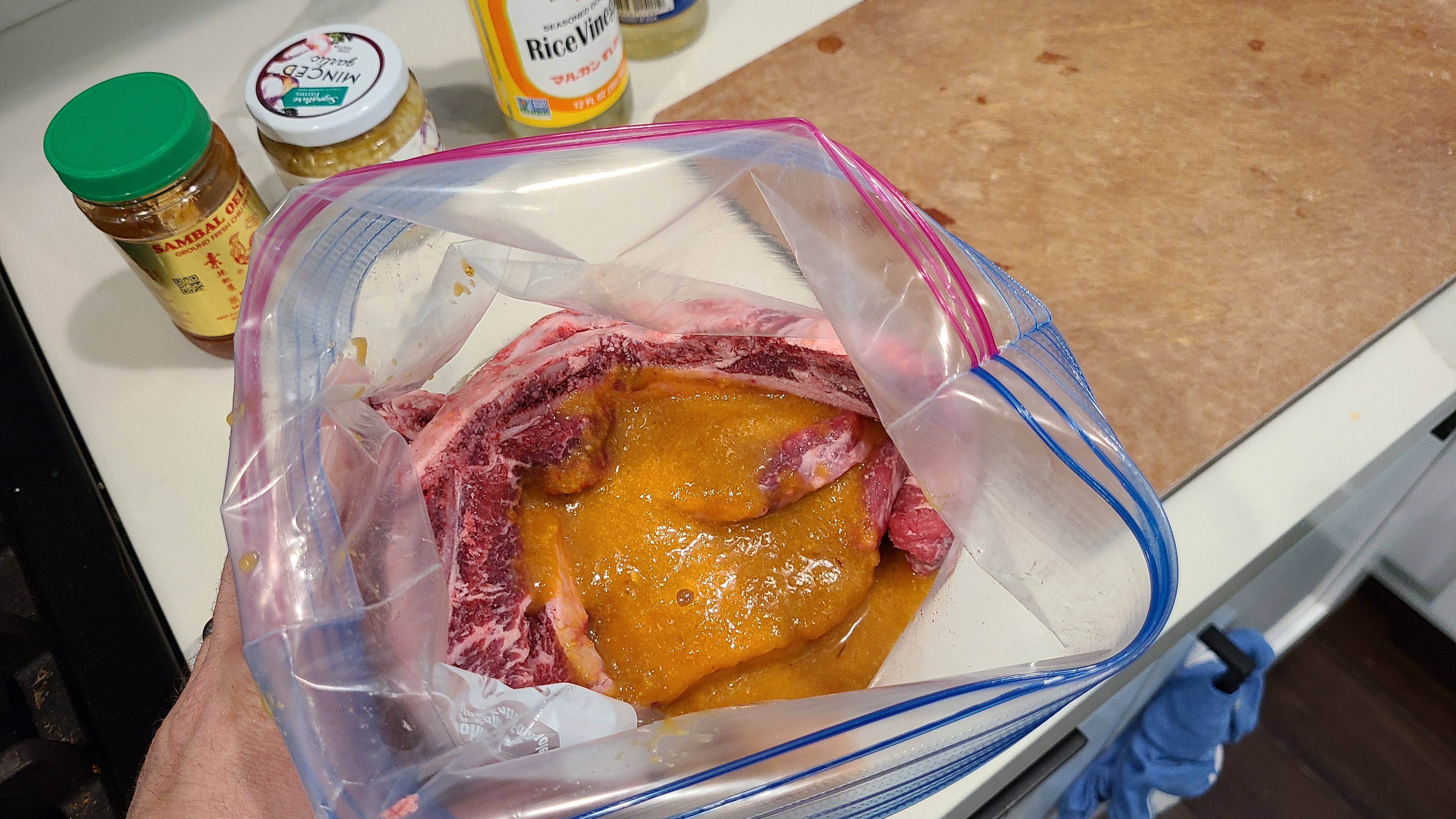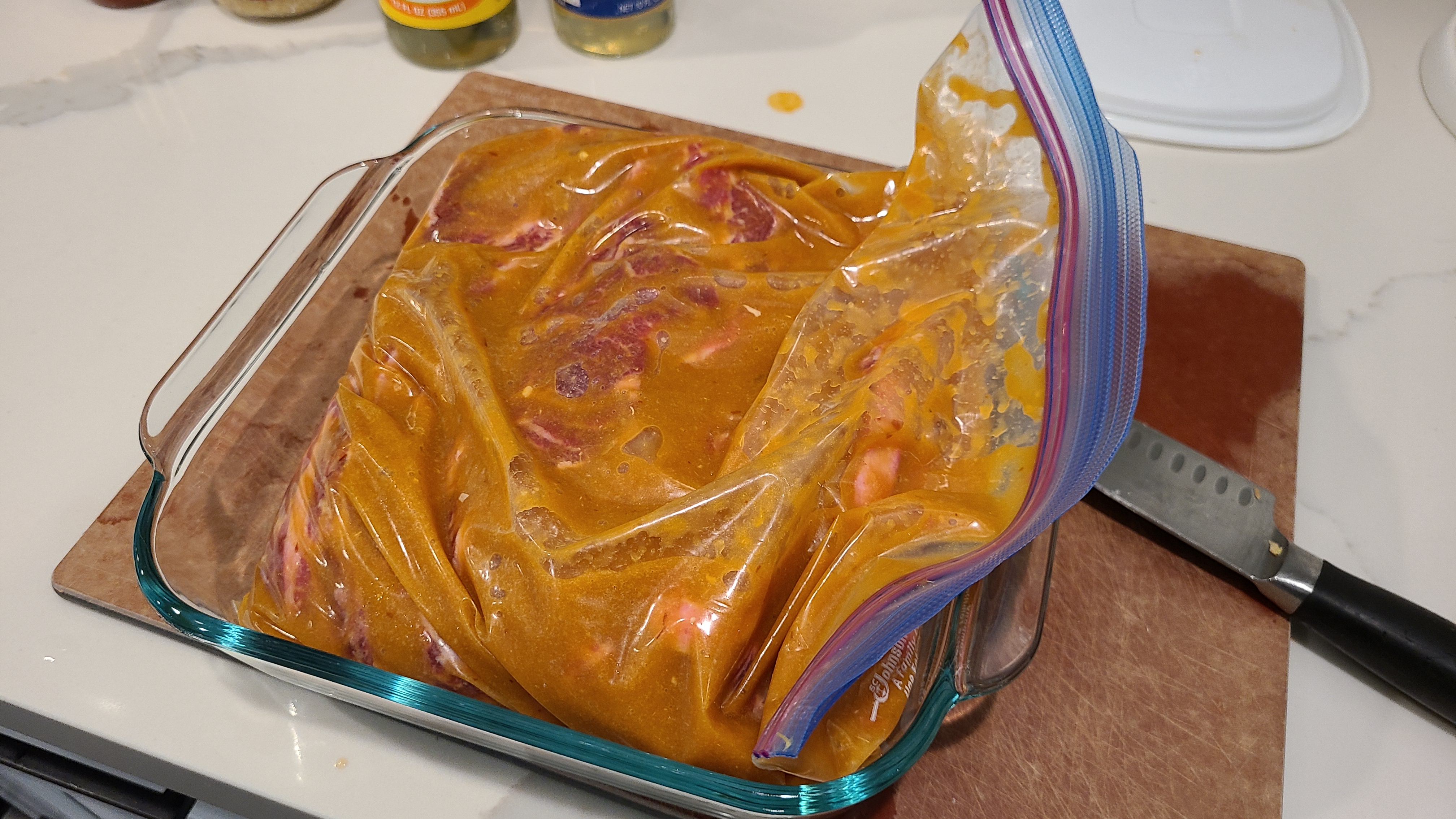 - Place the ribs into a gallon ziploc bag, or a big bowl, and pour the marinade over it, making sure that everything gets coated evenly.