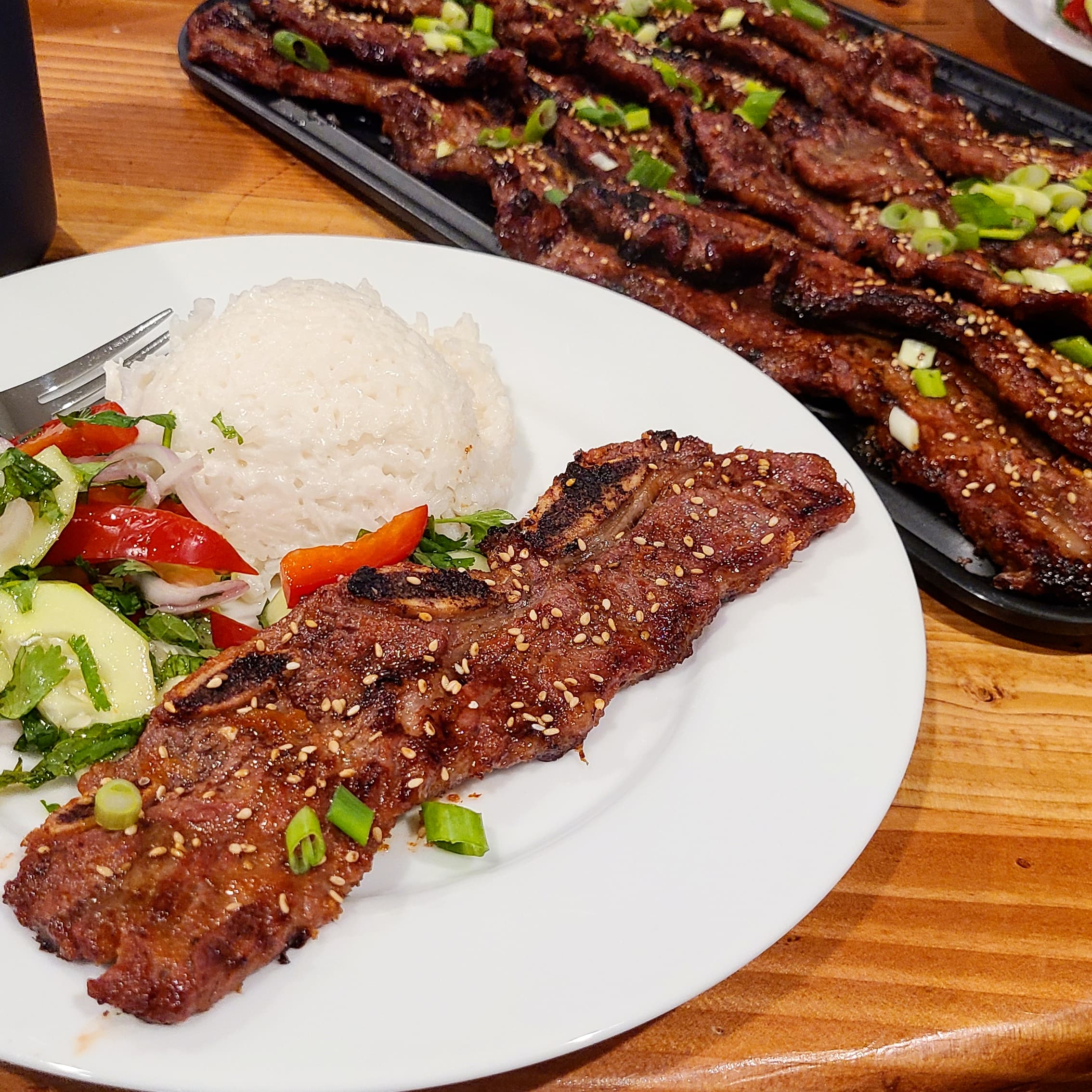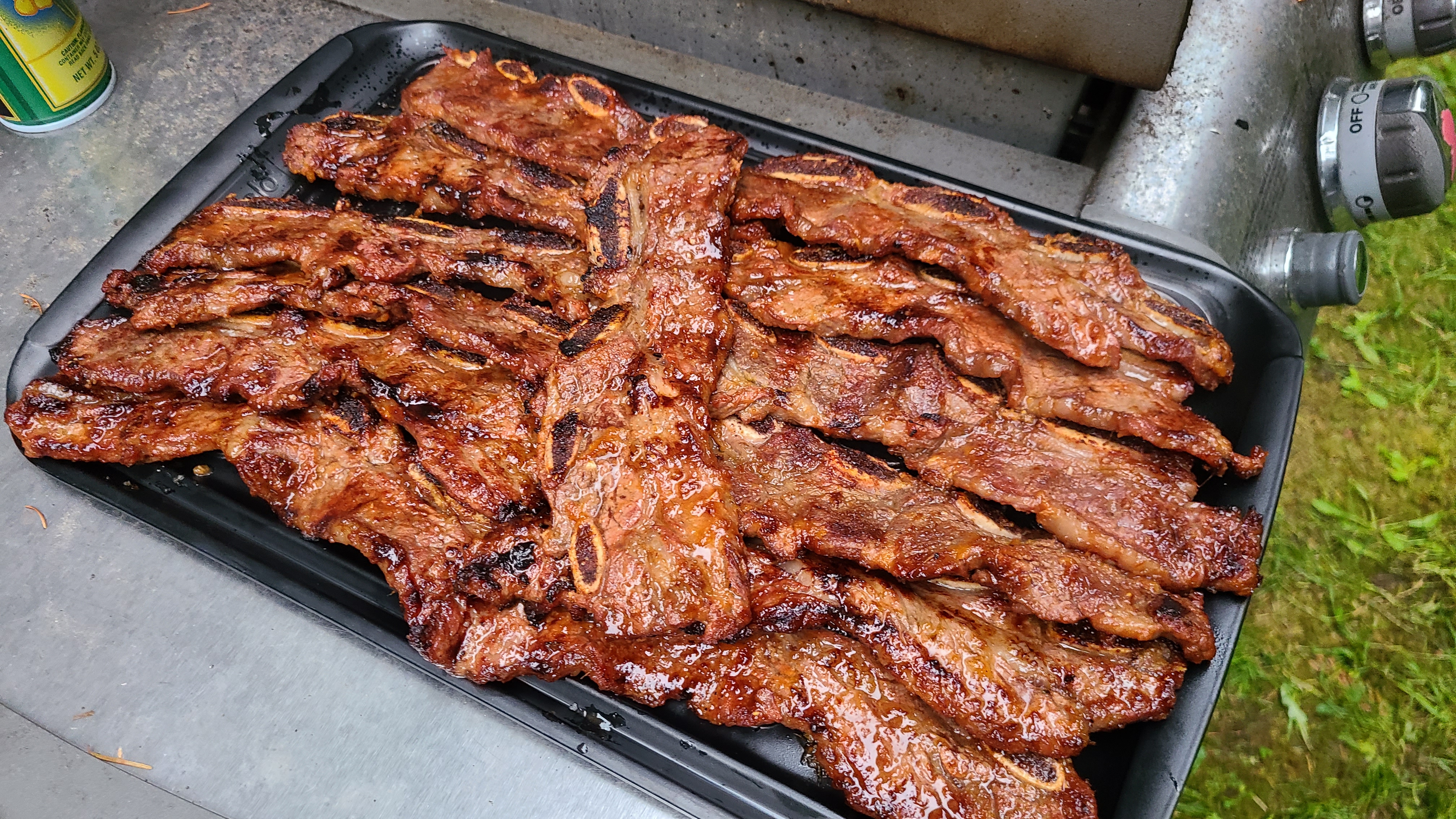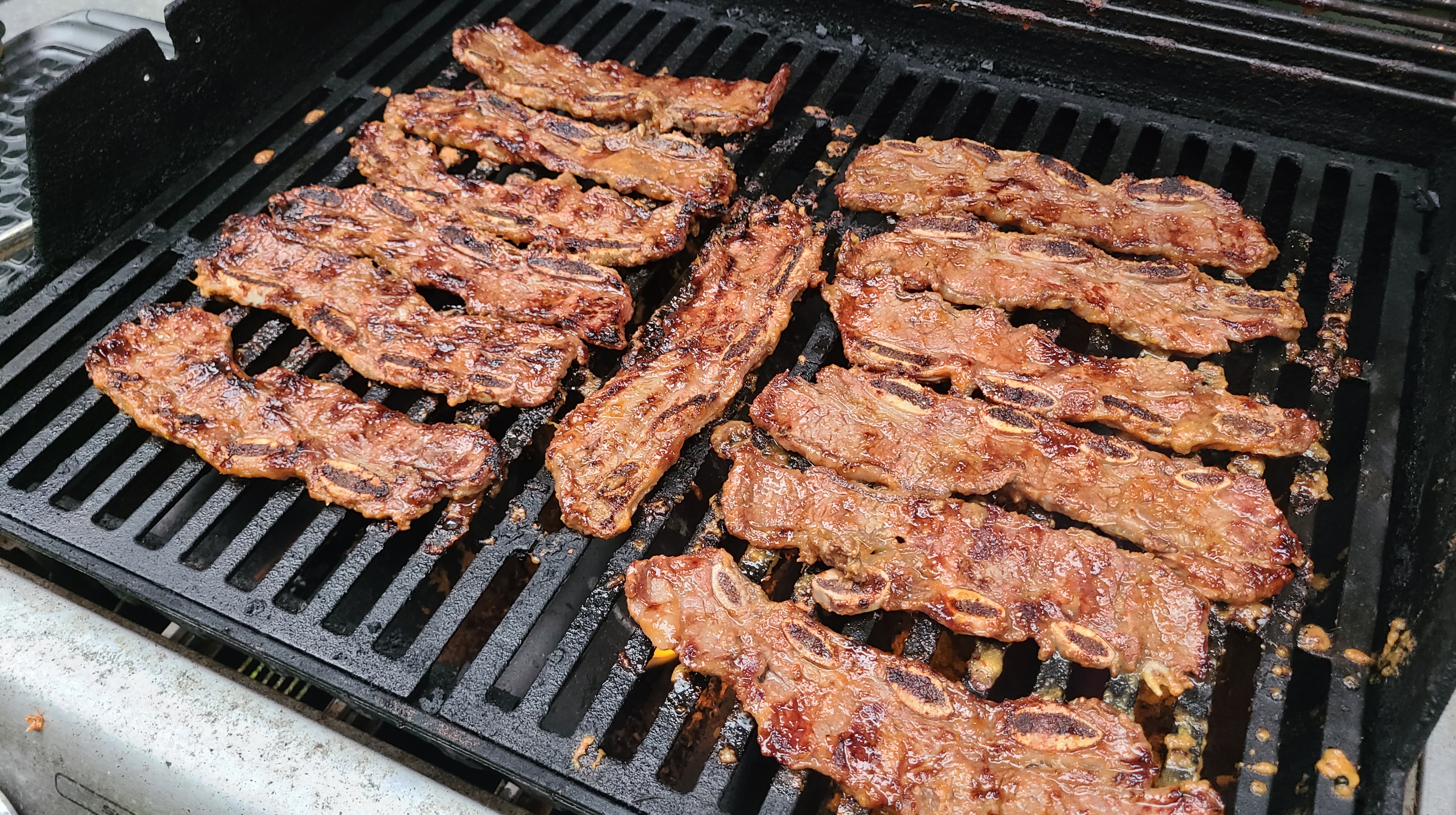 At some point, some genius of a butcher (I’m assuming) realized that if you slice the rib plate really thin (1/4 to 1/2 inch) against the bone, you can negate a whole bunch of those problems. The thin pieces of meat hold all of the rich beefy flavor of regular beef ribs, but you don’t have to spend hours breaking down the tissues to make it not rubbery. The thin cut allows for absorption of tasty marinades, and – BONUS – cooks to tender perfection surprisingly quickly.