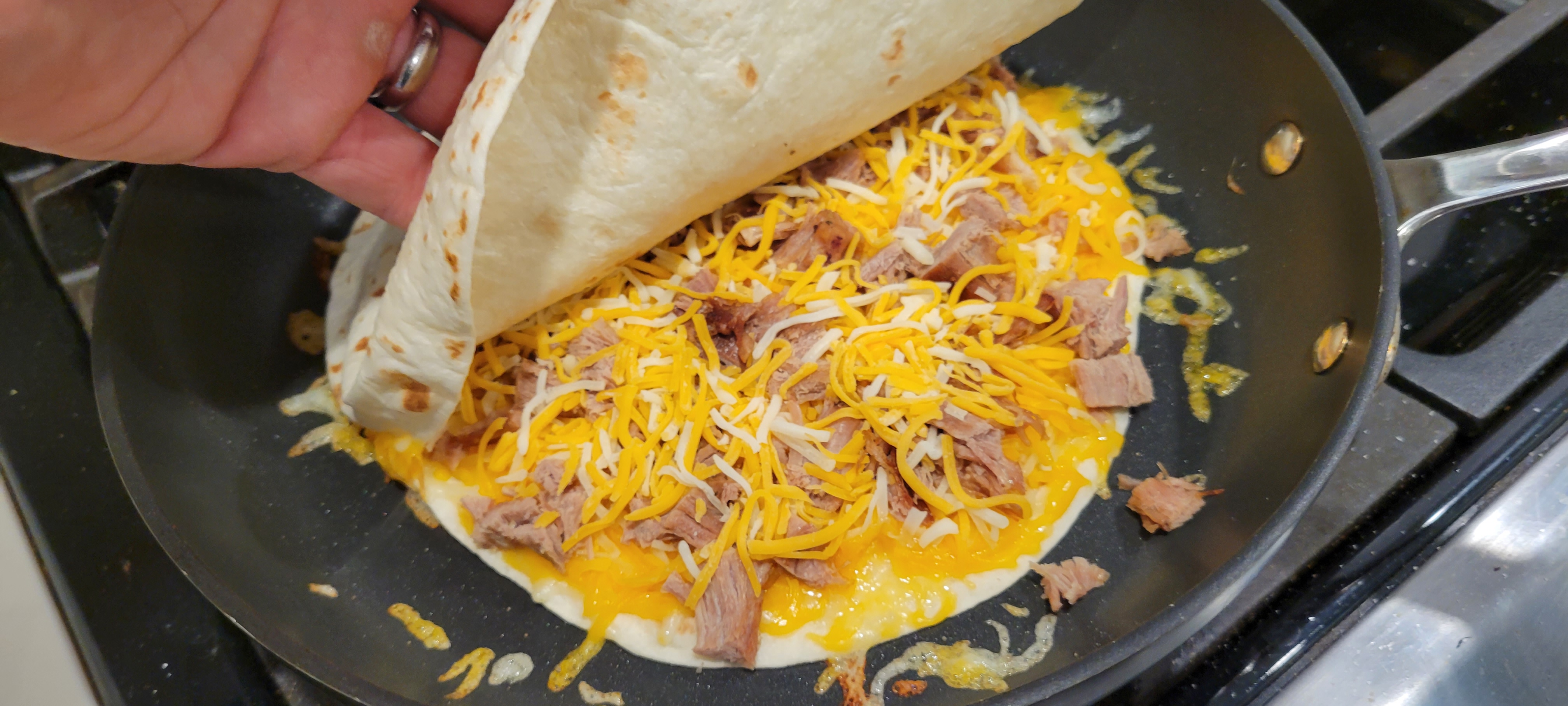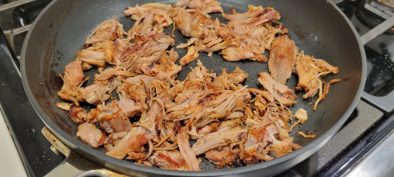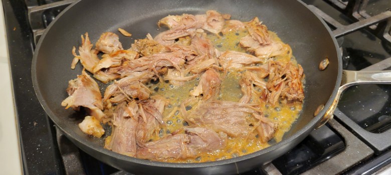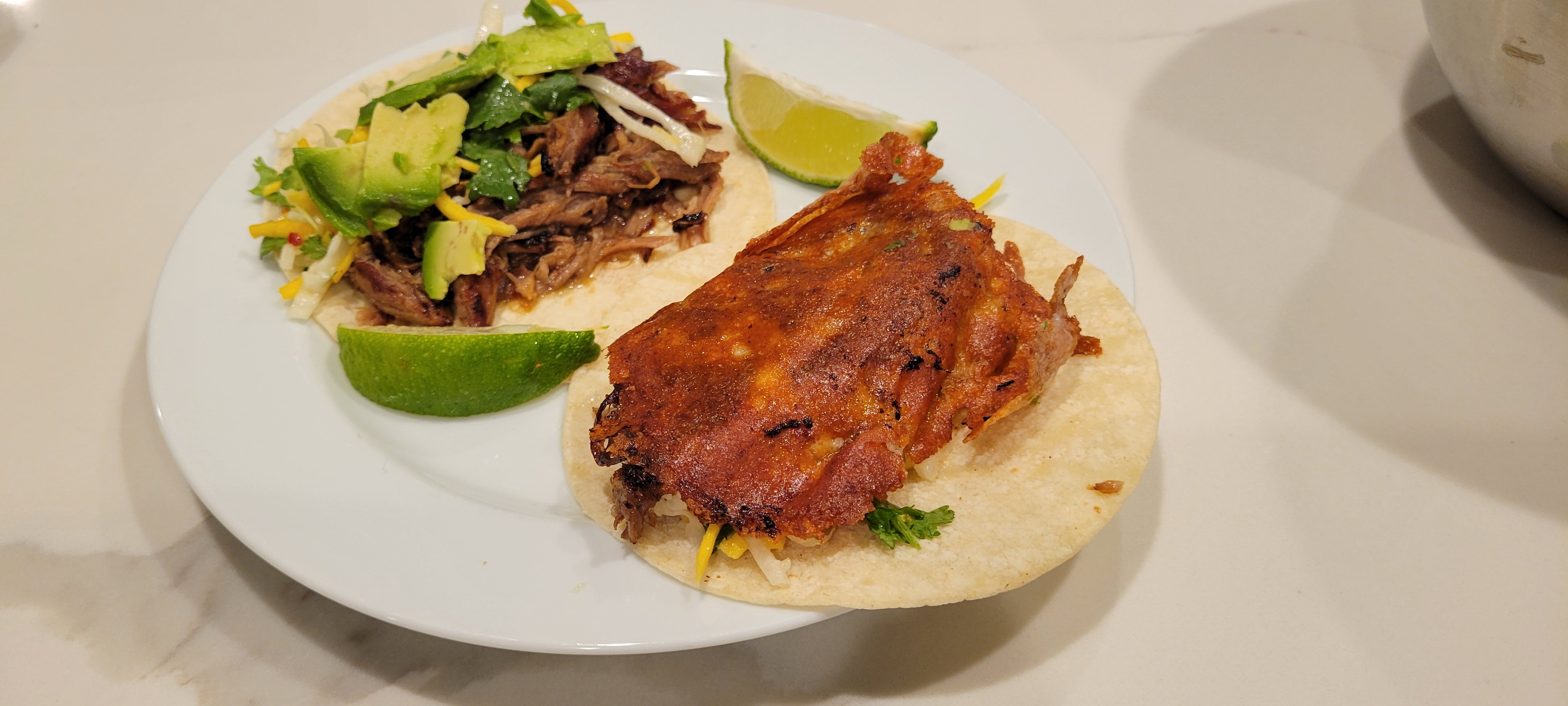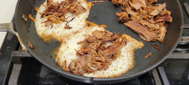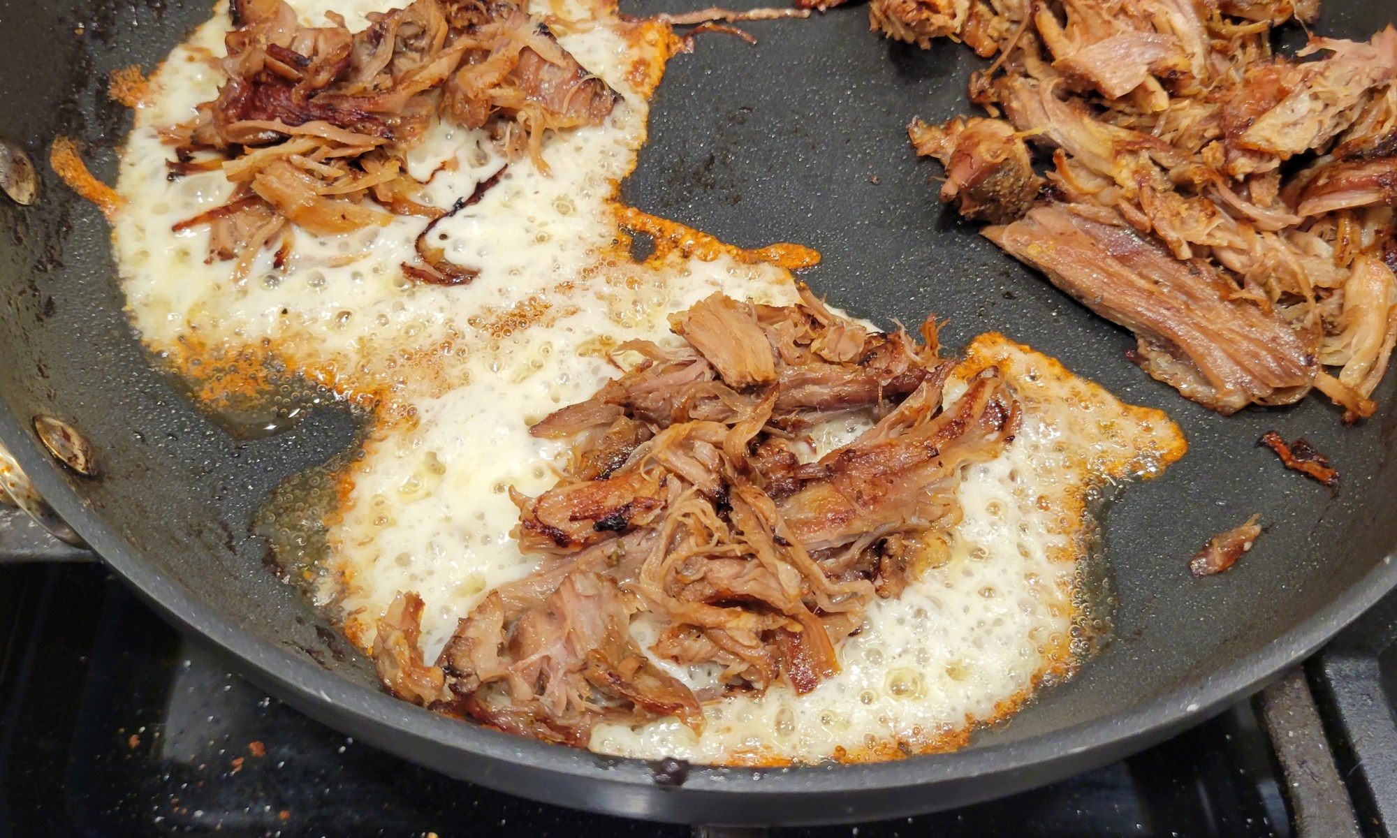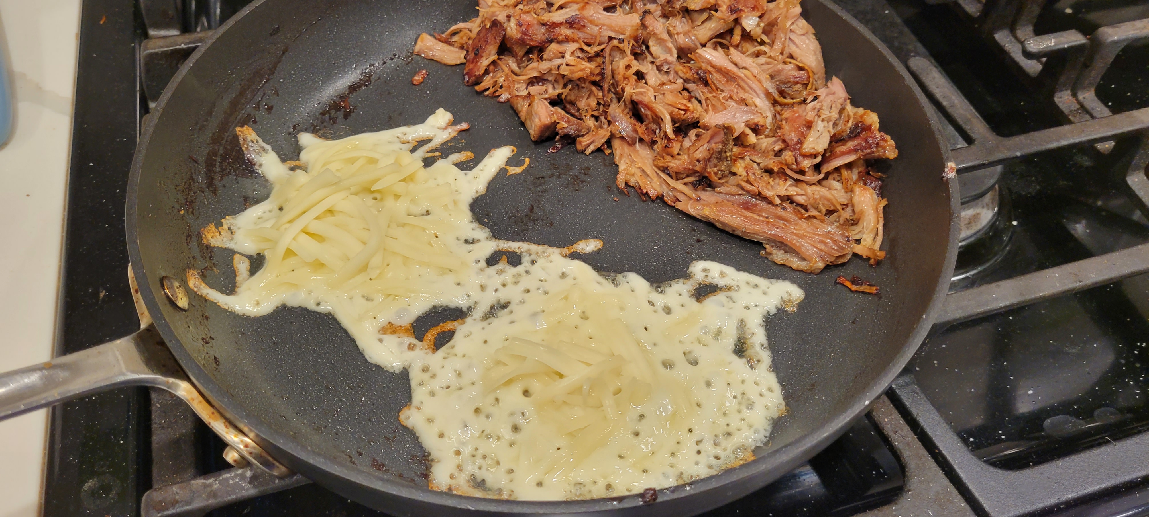 - BONUS: Having been inspired by restaurant in La Jolla, I tried pan frying some jack cheese, placing carnitas in the middle, and then wrapping the whole thing in a tortilla. Spoiler: it was delicious.
