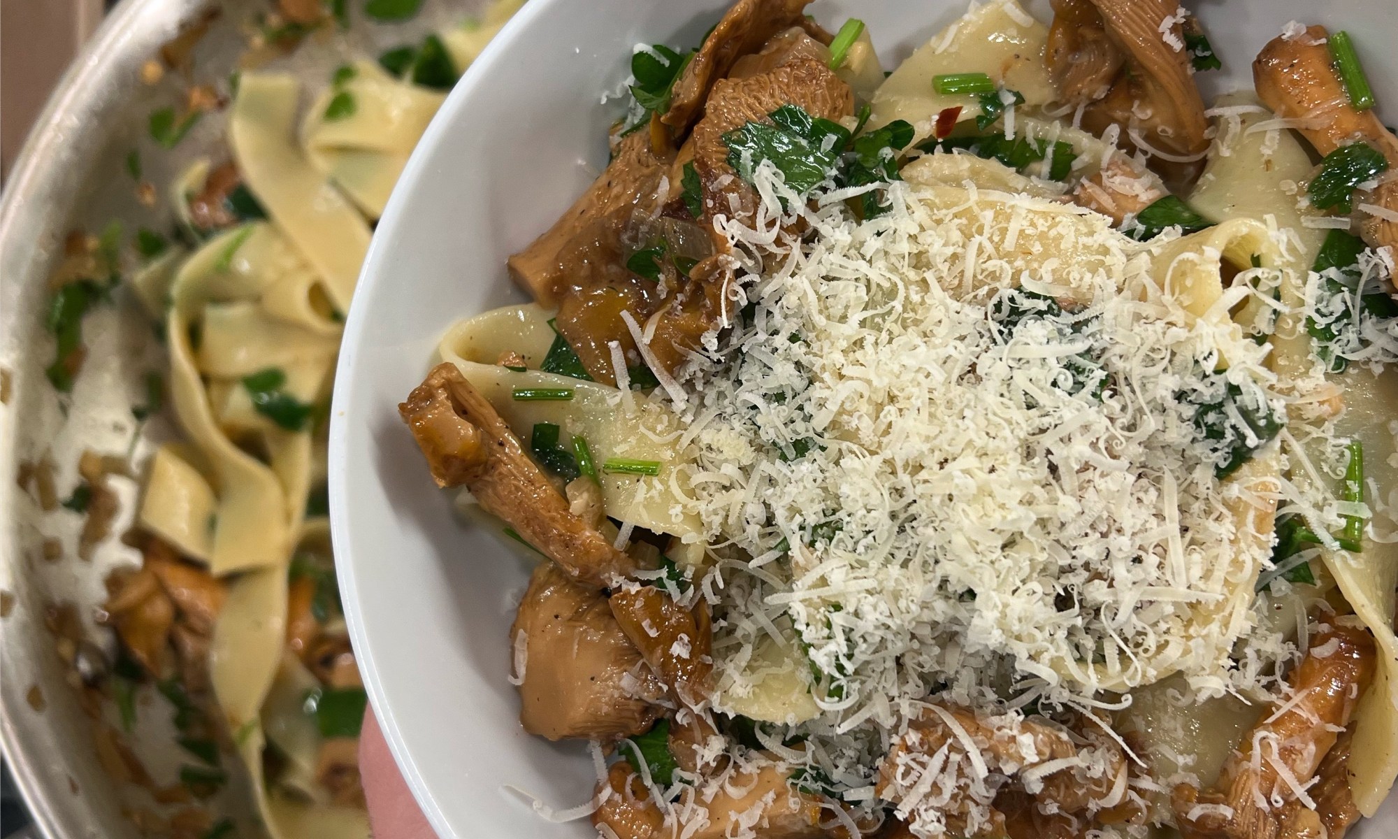 - As the pasta cooks, clean and chop the mushrooms. If yours were like mine, they’ll come in many different sizes. Regardless, I’ve found that the best way to clean chanterelles is to fill a big mixing bowl full of cold water, and quickly dunk the mushrooms in one or two at a time and rub the the dirt off with your fingers. Then let them dry out on a kitchen towel while you prep the rest of the ingredients. I like to do a rough chop on the mushrooms right before I cook them.