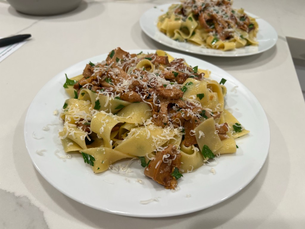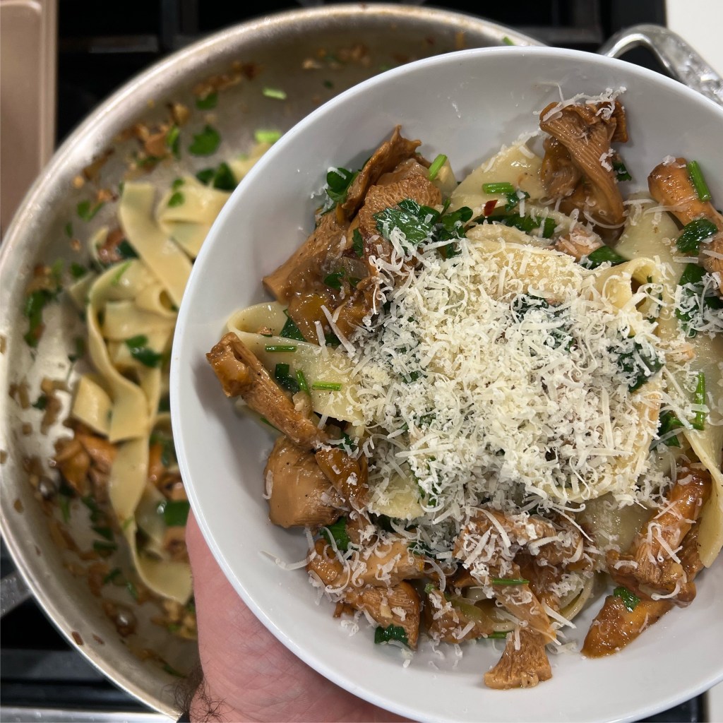 Chanterelle season in the Pacific Northwest lasts through the fall and into the early winter chill, and while you won’t find me poking around the woods for edible toadstools, you will certainly find me buying them by the pound out of that giant refrigerator in the back of our Costco. If you’ve also picked up some of these tasty delicacies, or were simply considering it, please allow me to share my favorite Chantererelle recipe.