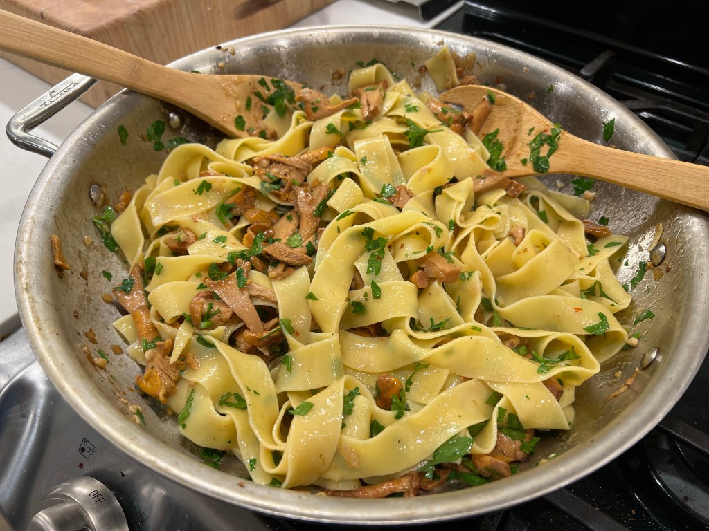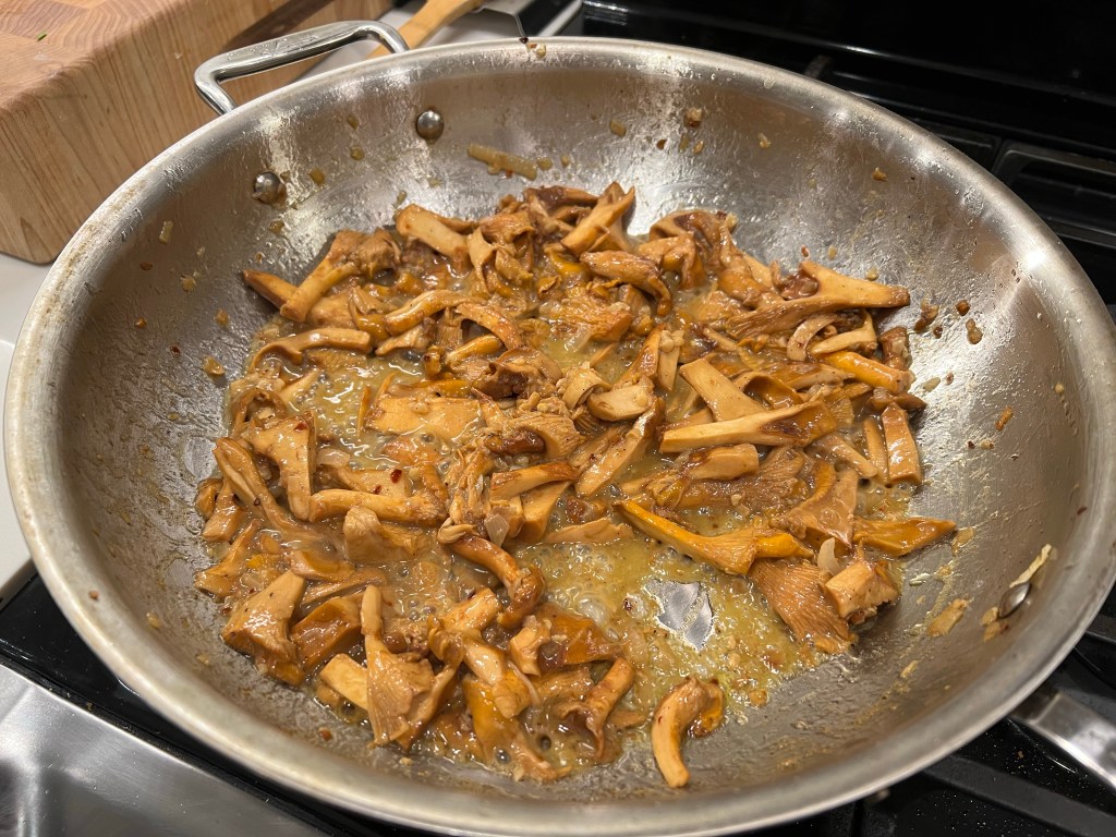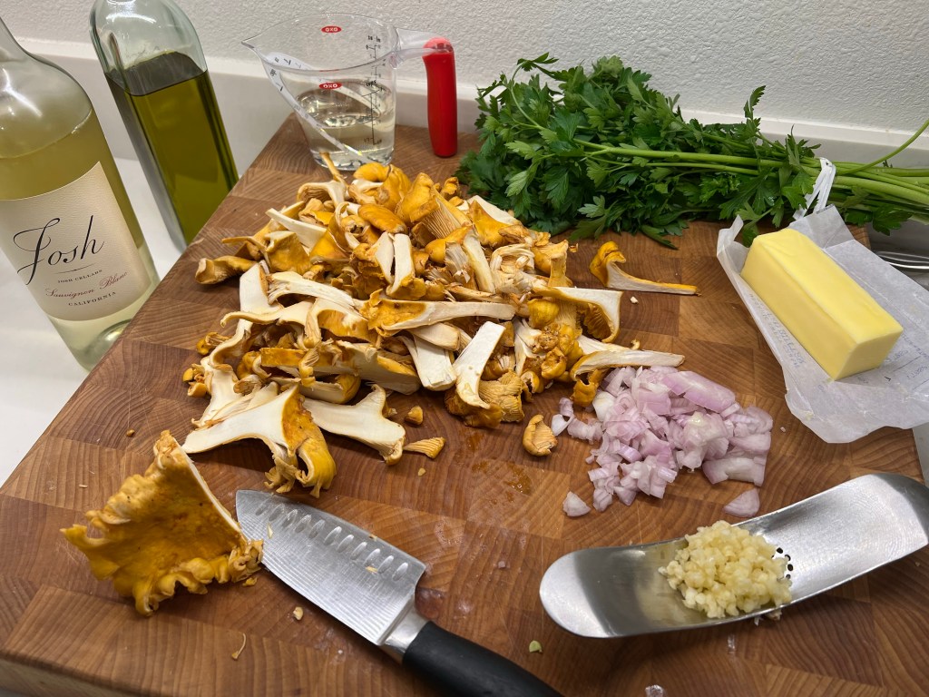 - 1 lb (roughly 4 cups) Chanterelle mushrooms – cleaned and chopped