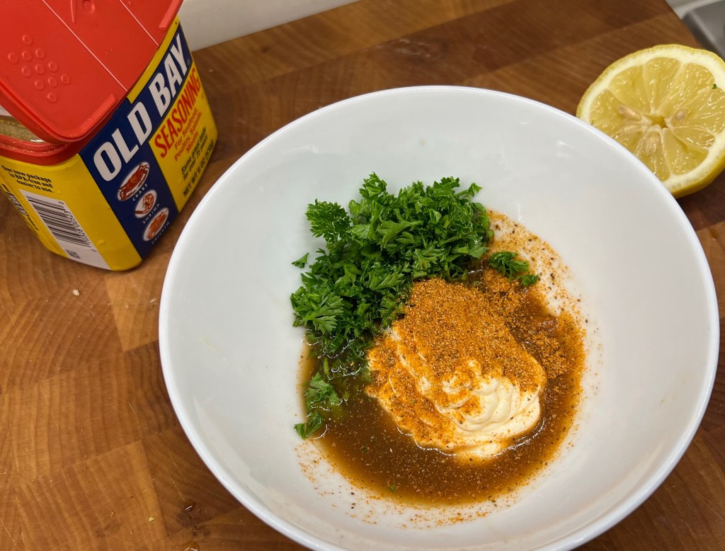 BUT, if you want to kick it up a notch, you’ll need a simple sauce to give it that extra punch of flavor. Enter: my simple Old Bay remoulade.