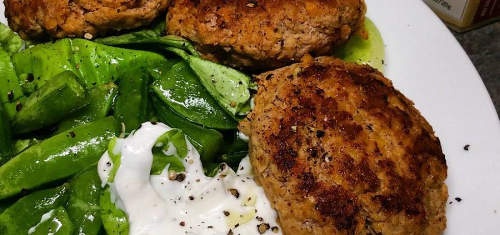 Mini Curry Turkey Patties with Salad and Lemon Yogurt